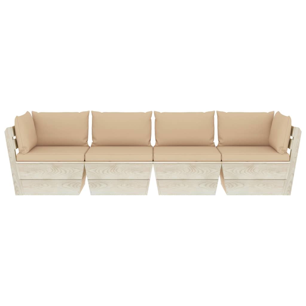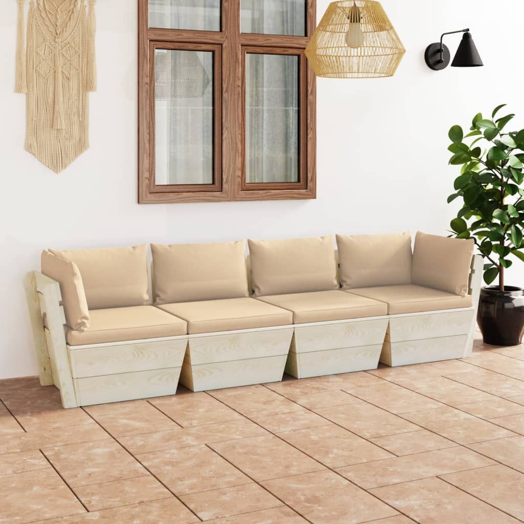 Ogrodowa sofa 4-osobowa z palet, z poduszkami, drewno świerkowe