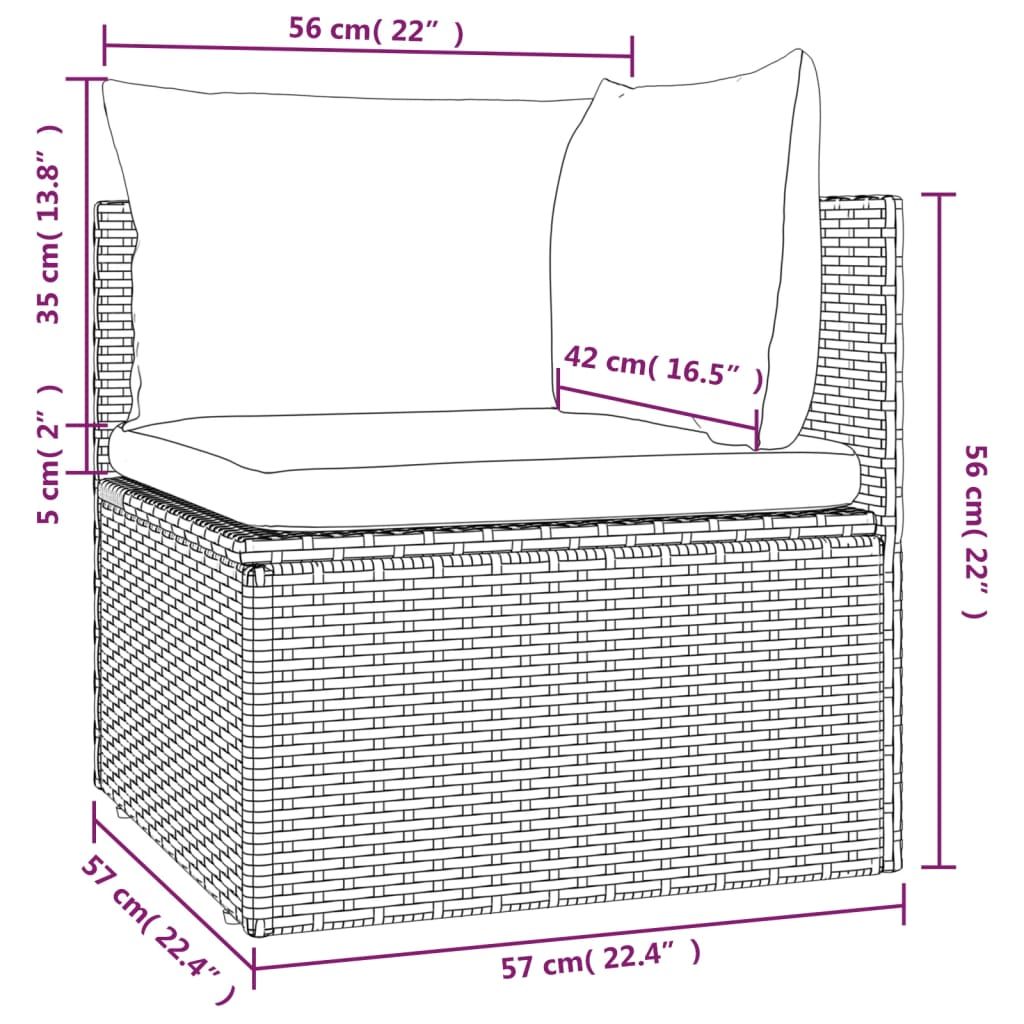 Ogrodowa sofa narożna z poduszkami, szara, 57x57x56 cm