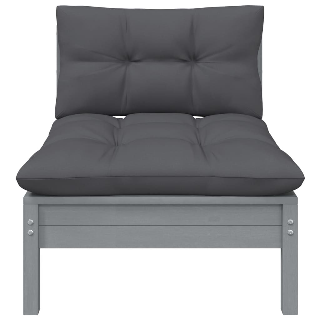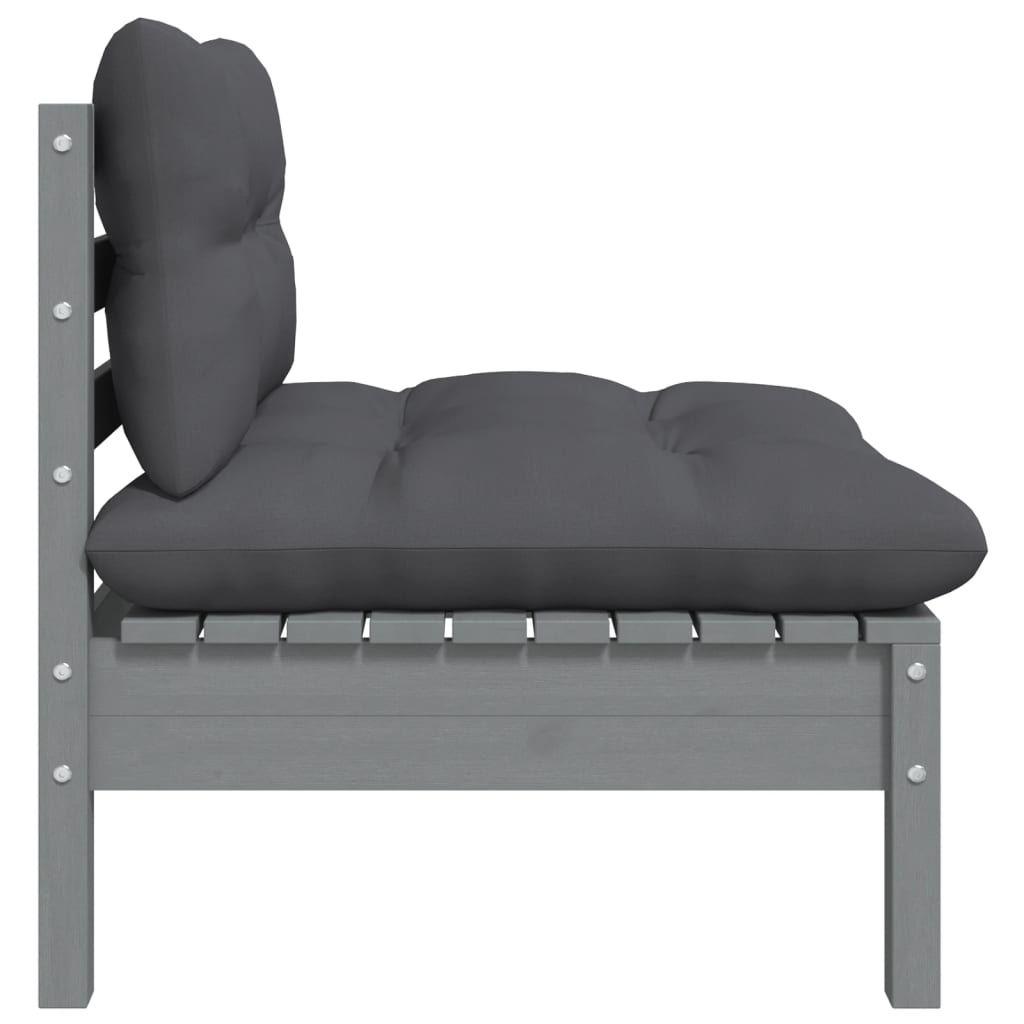 Ogrodowa sofa środkowa z antracytowymi poduszkami, szare drewno