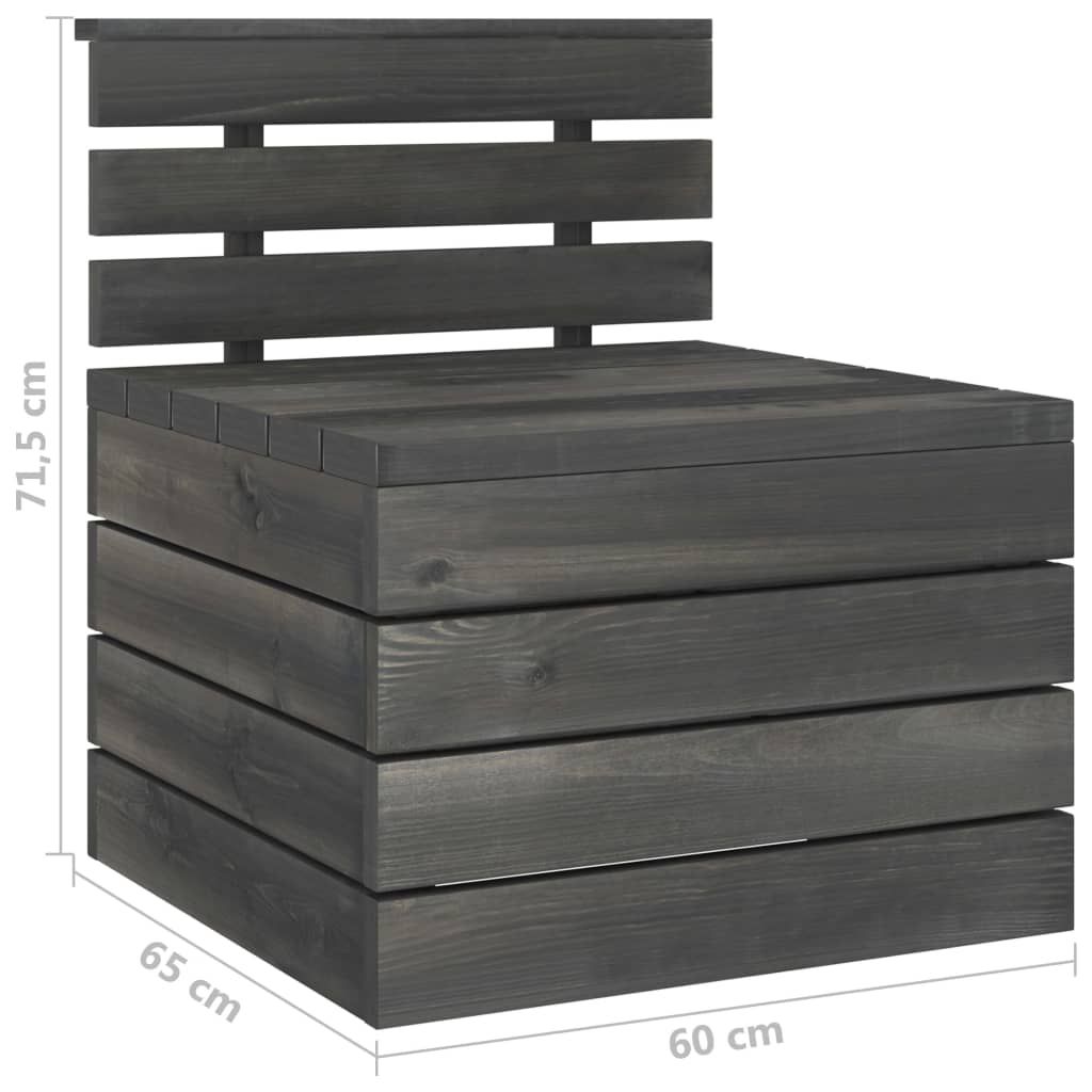 Ogrodowa sofa środkowa z palet, lite drewno sosnowe ciemnoszara