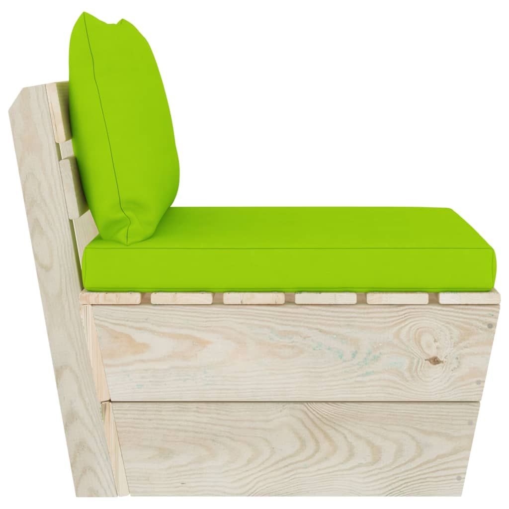 Ogrodowa sofa środkowa z palet, poduszki, impregnowany świerk