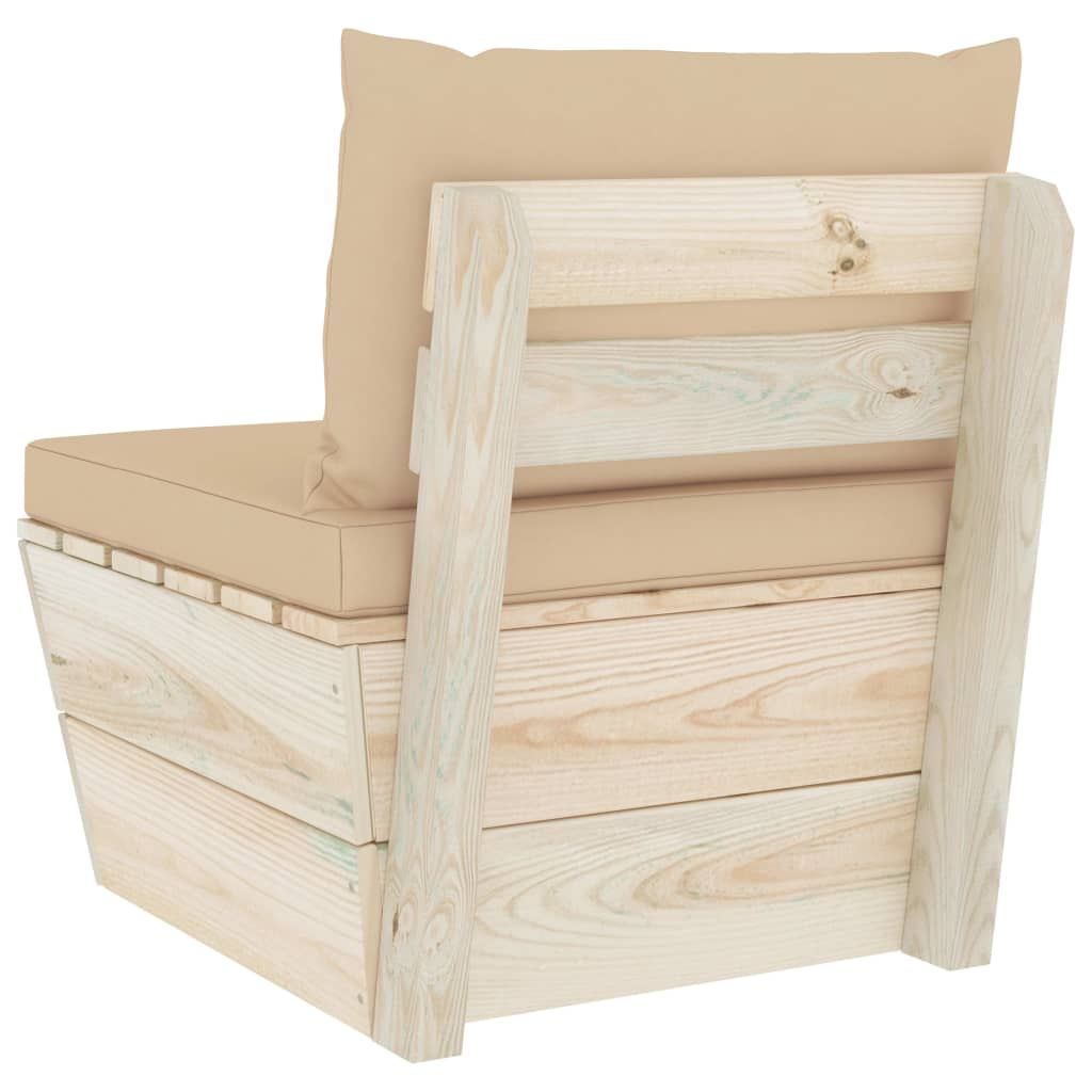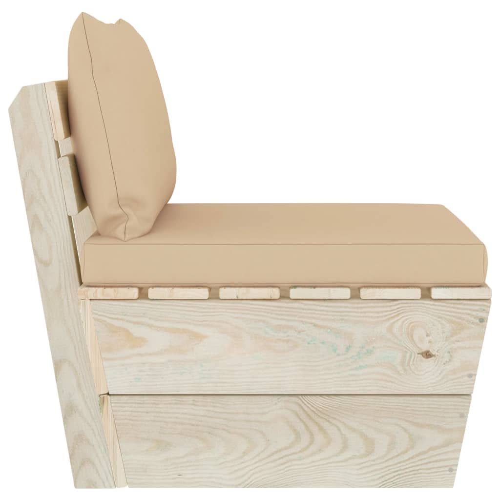 Ogrodowa sofa środkowa z palet, poduszki, impregnowany świerk