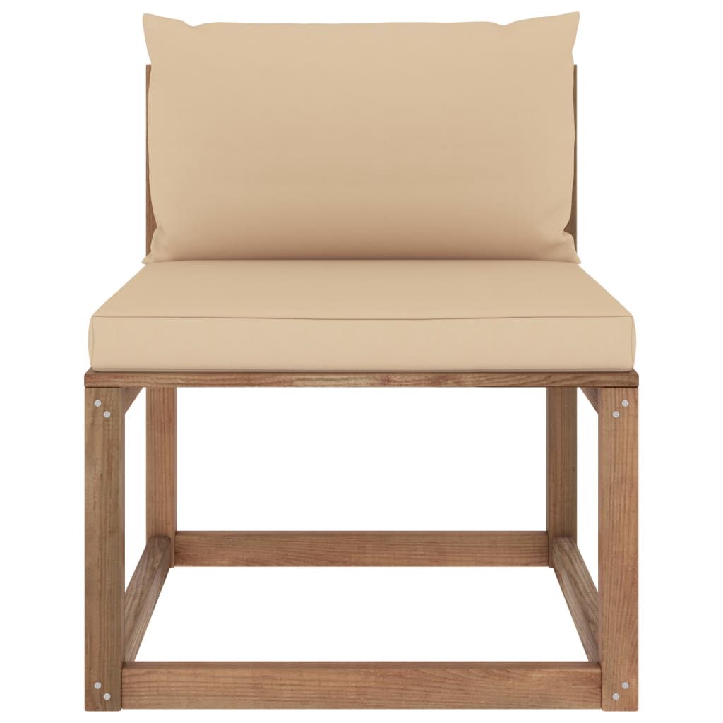 Ogrodowa sofa środkowa z palet, z beżowymi poduszkami