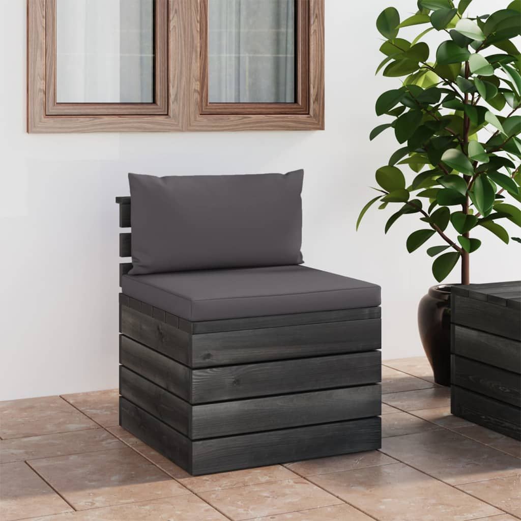 Ogrodowa sofa środkowa z palet, z poduszkami, drewno sosnowe