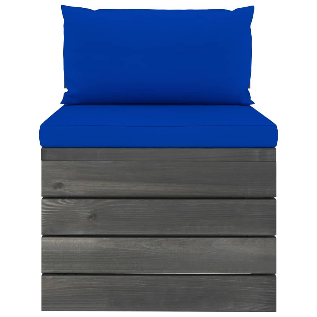 Ogrodowa sofa środkowa z palet, z poduszkami, drewno sosnowe