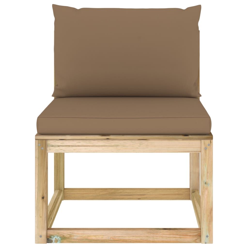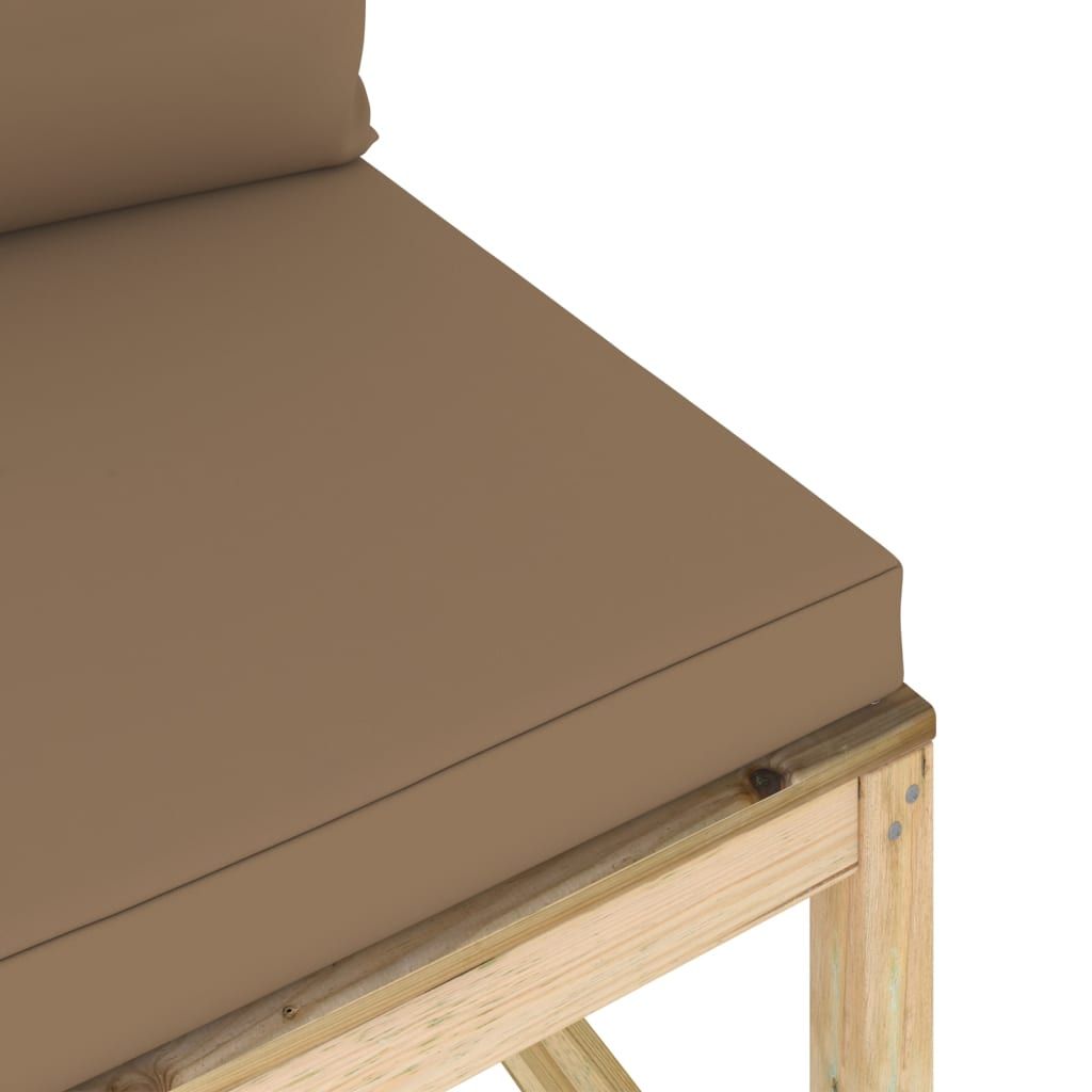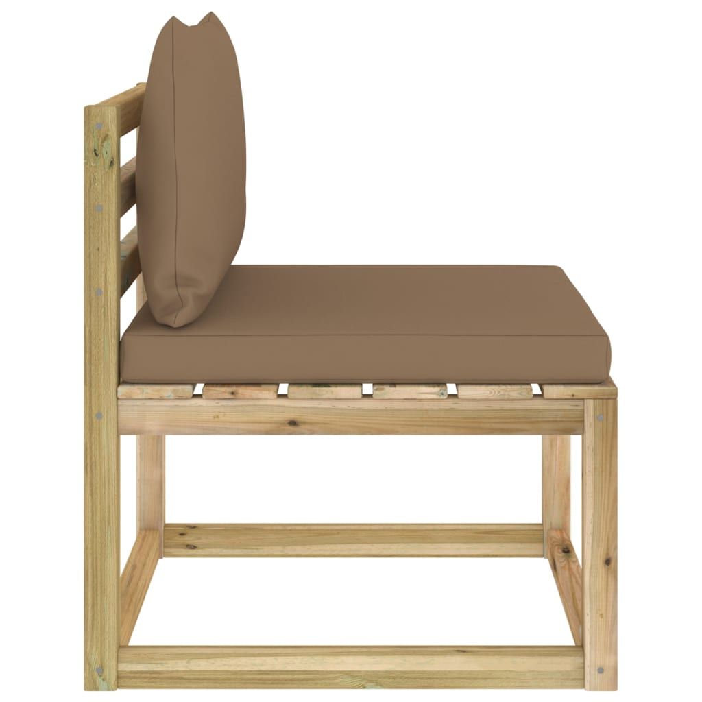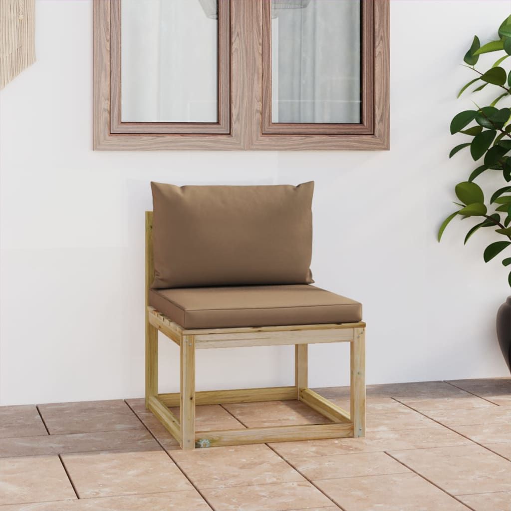 Ogrodowa sofa środkowa z poduszkami, impregnowana sosna