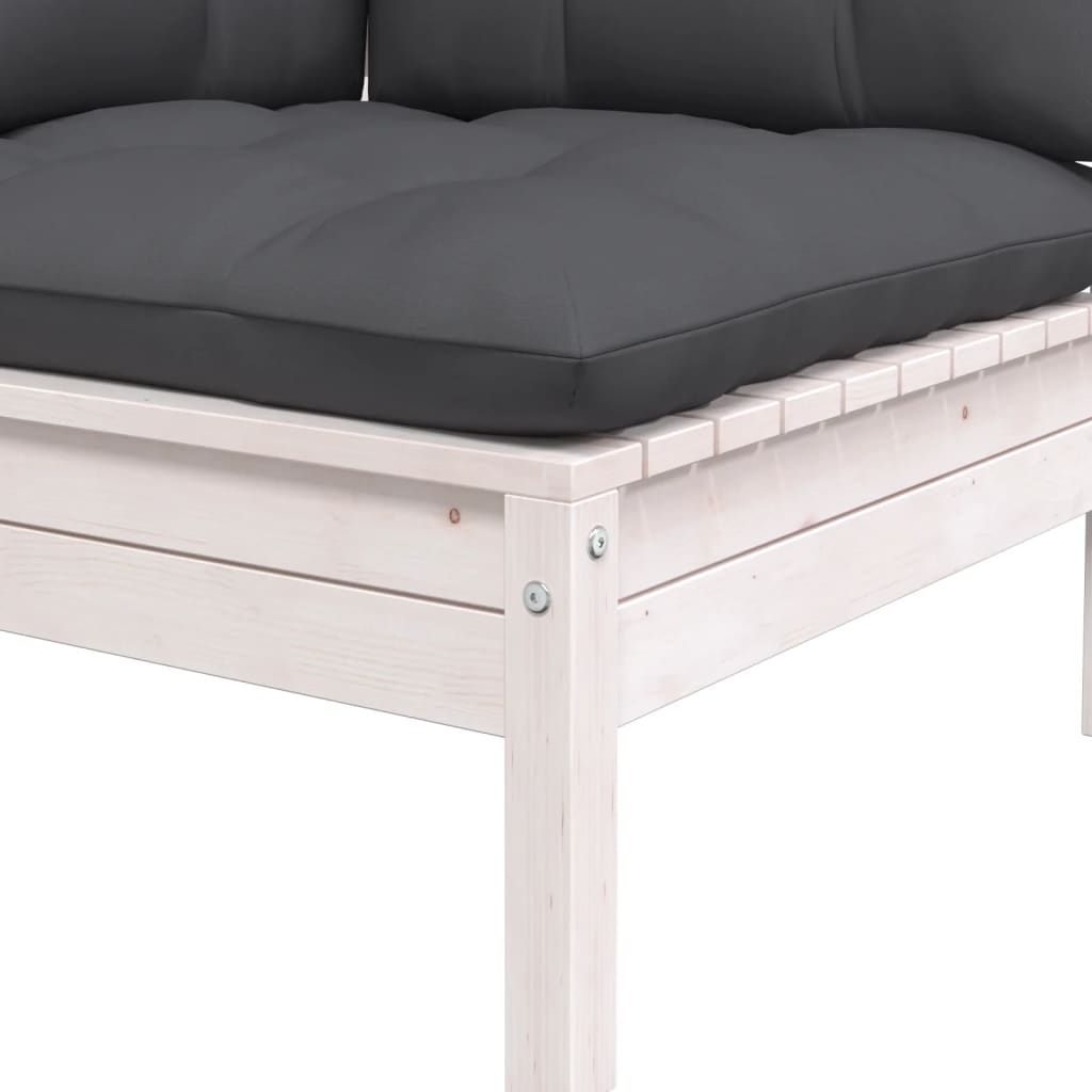 Ogrodowe siedzisko narożne z białymi poduszkami, lita sosna