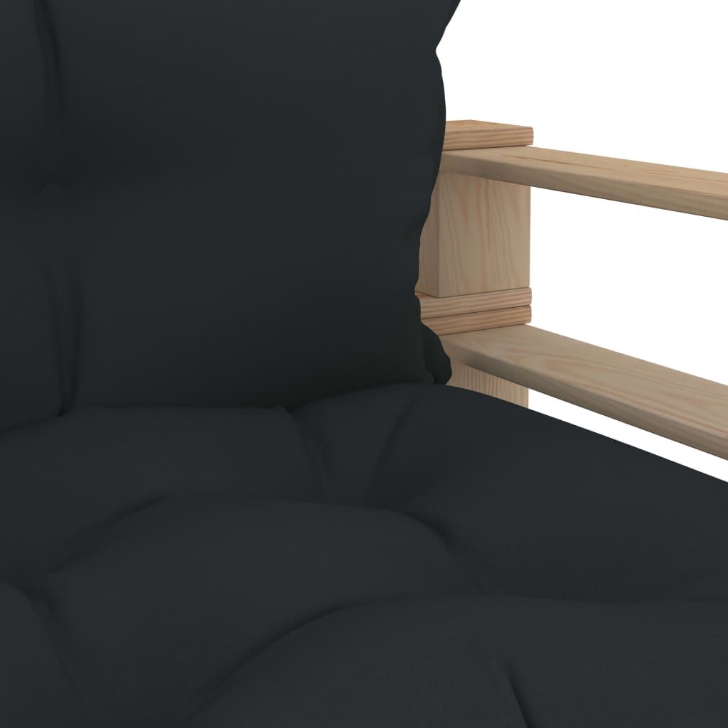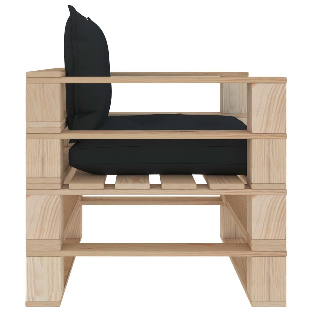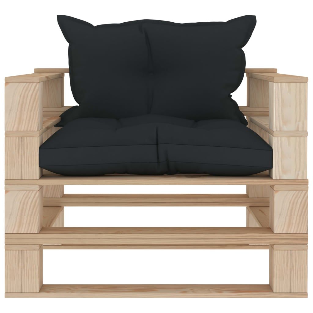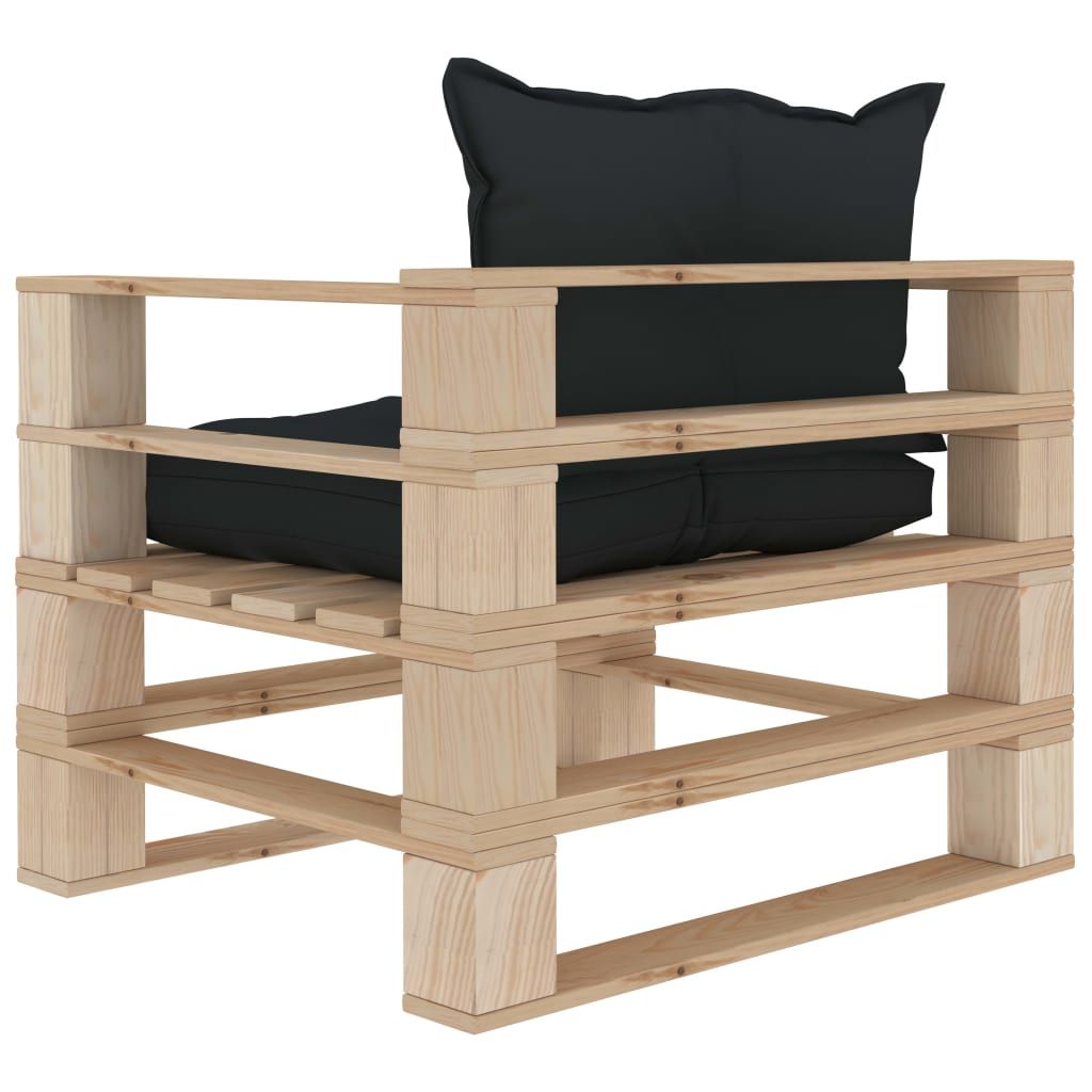 Ogrodowe siedzisko z palet z antracytowymi poduszkami, drewno