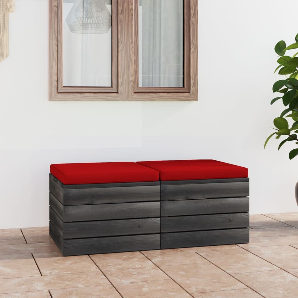 Ogrodowe stołki z palet, 2 szt., z poduszkami, drewno sosnowe