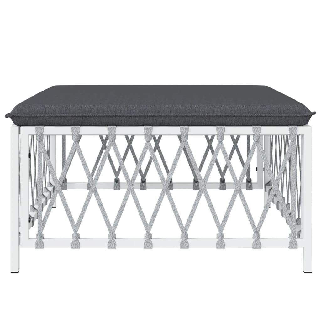 Ogrodowy podnóżek z poduszką, biały, plecionka