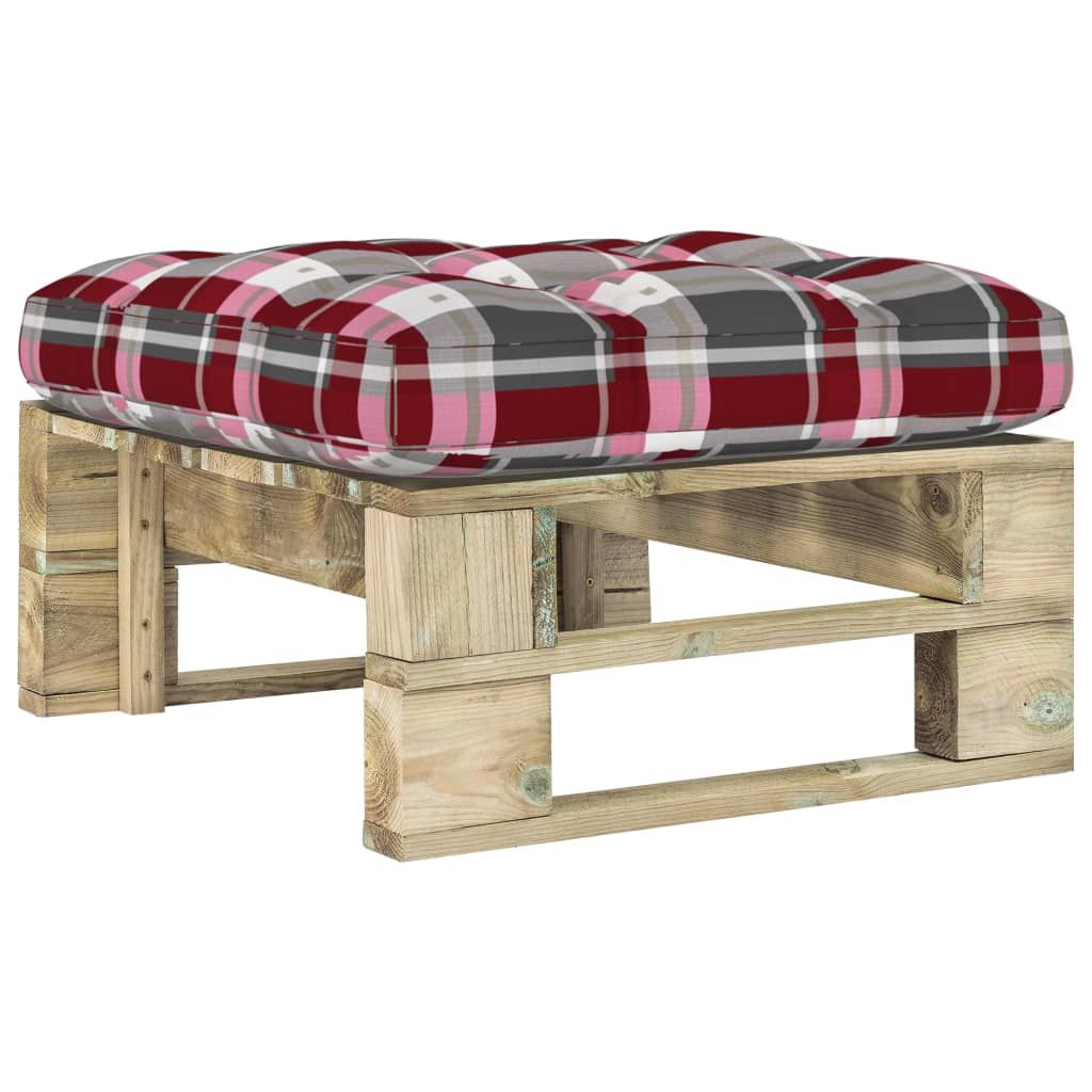 Ten stołek ogrodowy z palet będzie znakomitym wyborem do relaksu i korzystania z dobrej pogody. Za sprawą ponadczasowej formy wniesie on odrobinę rustykalnego uroku do Twojego patio, ogrodu lub salonu. Może on posłużyć także jako podnóżek lub stolik kawowy! Wykonany z impregnowanego drewna sosnowego podnóżek jest trwały, odporny na warunki atmosferyczne i przyjazny dla środowiska. Ma on solidną konstrukcję i jest łatwy w utrzymaniu. Wraz z dołączoną poduszką oferuje on najwyższy komfort Tobie i Twoim gościom. Ten drewniany stołek został specjalnie zaprojektowany jako część zestawu wypoczynkowego, ale sprawdzi się również jako pojedynczy mebel. Możesz połączyć go z innymi modułami, takimi jak podnóżek czy sofa narożna, aby stworzyć własną konfigurację ogrodowego kompletu wypoczynkowego! Uwaga: aby przedłużyć żywotność mebli ogrodowych, zalecamy zabezpieczenie ich wodoodpornym pokrowcem.