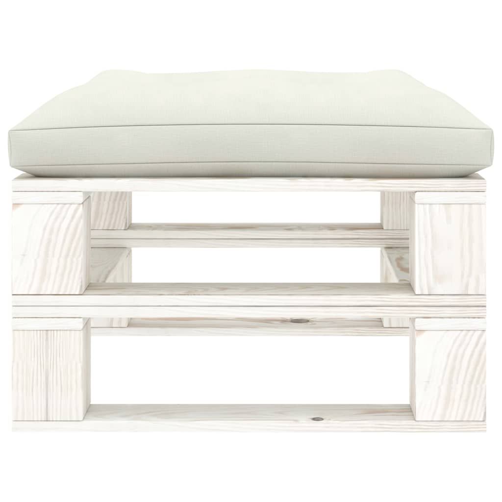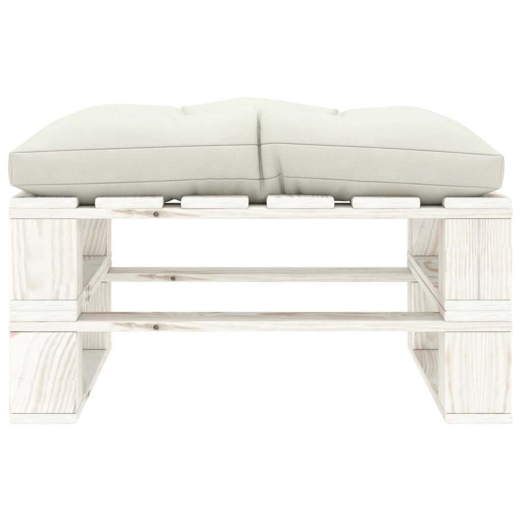 Ogrodowy stołek z palet z beżową poduszką, drewniany