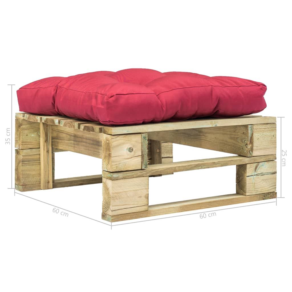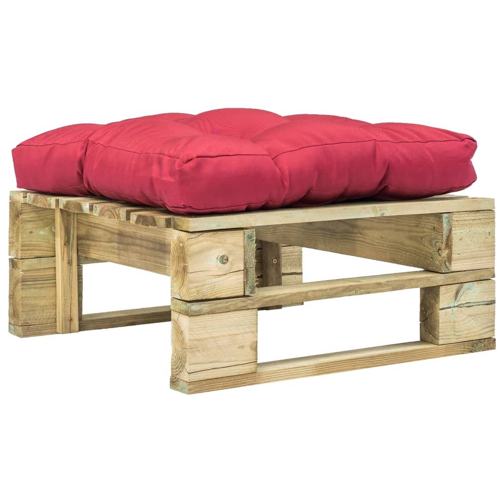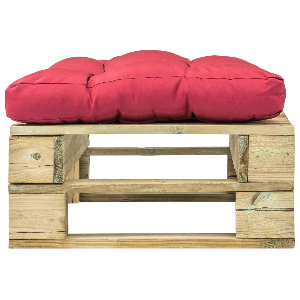 Ogrodowy stołek z palet z czerwoną poduszką, drewno