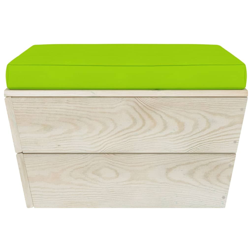 Ogrodowy stołek z palet z poduszką, impregnowany świerk