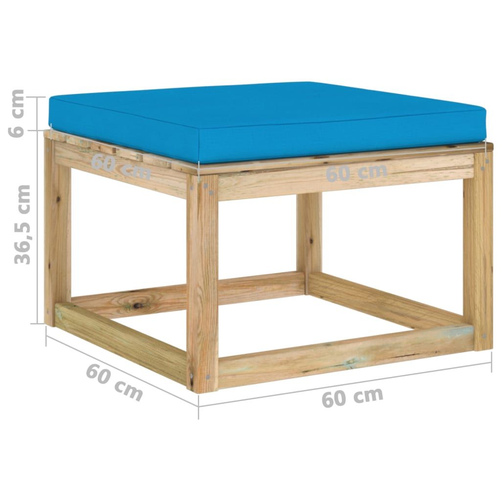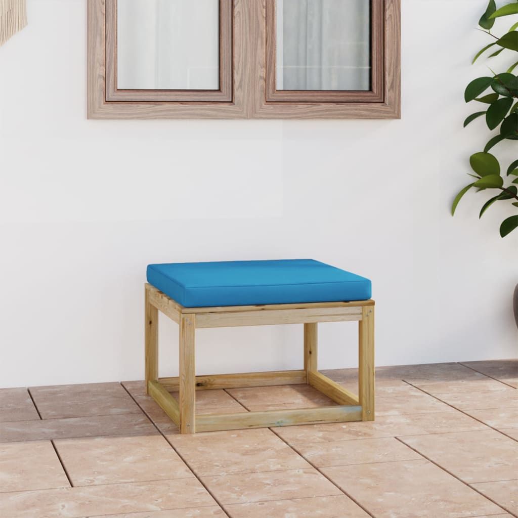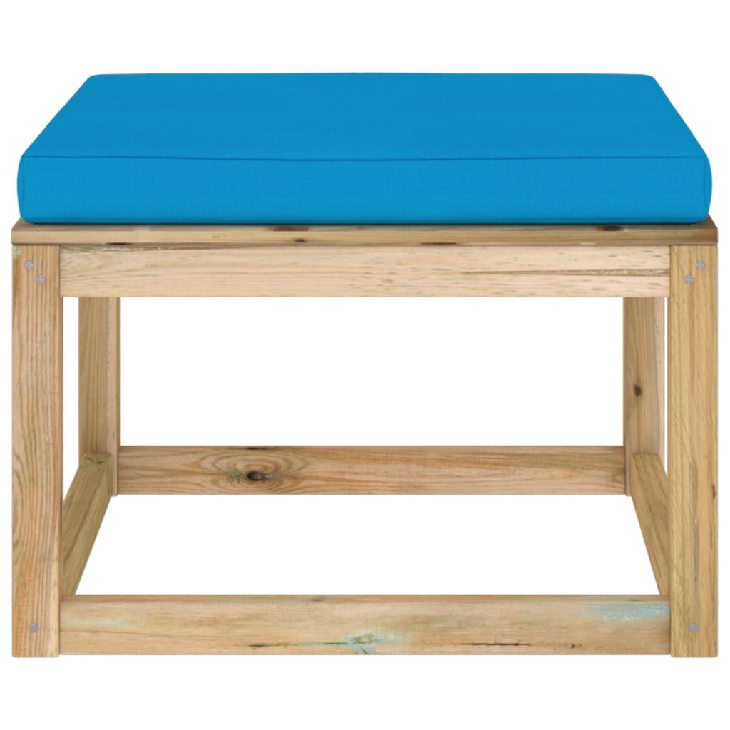 Ogrodowy stołek z poduszką, impregnowane na zielono drewno