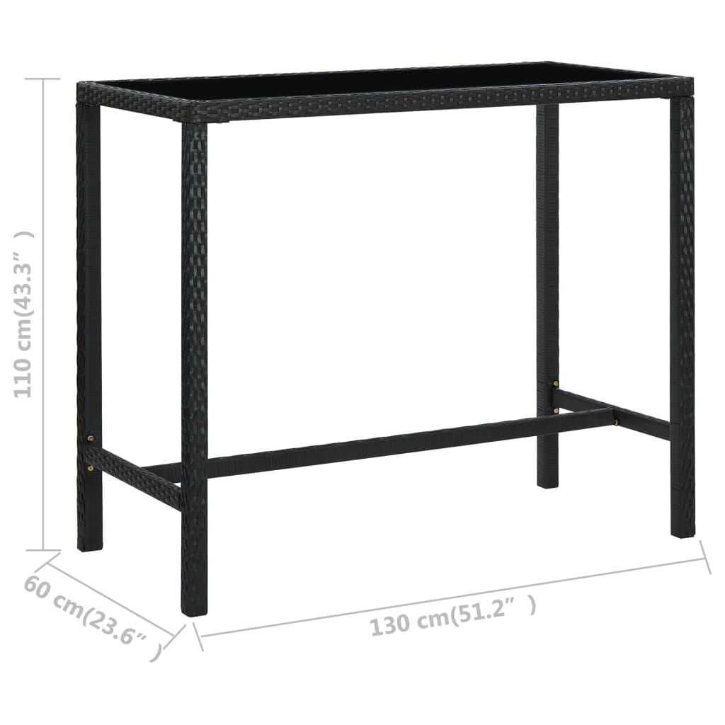 Ogrodowy stolik barowy, czarny 130x60x110 cm, polirattan i szkło
