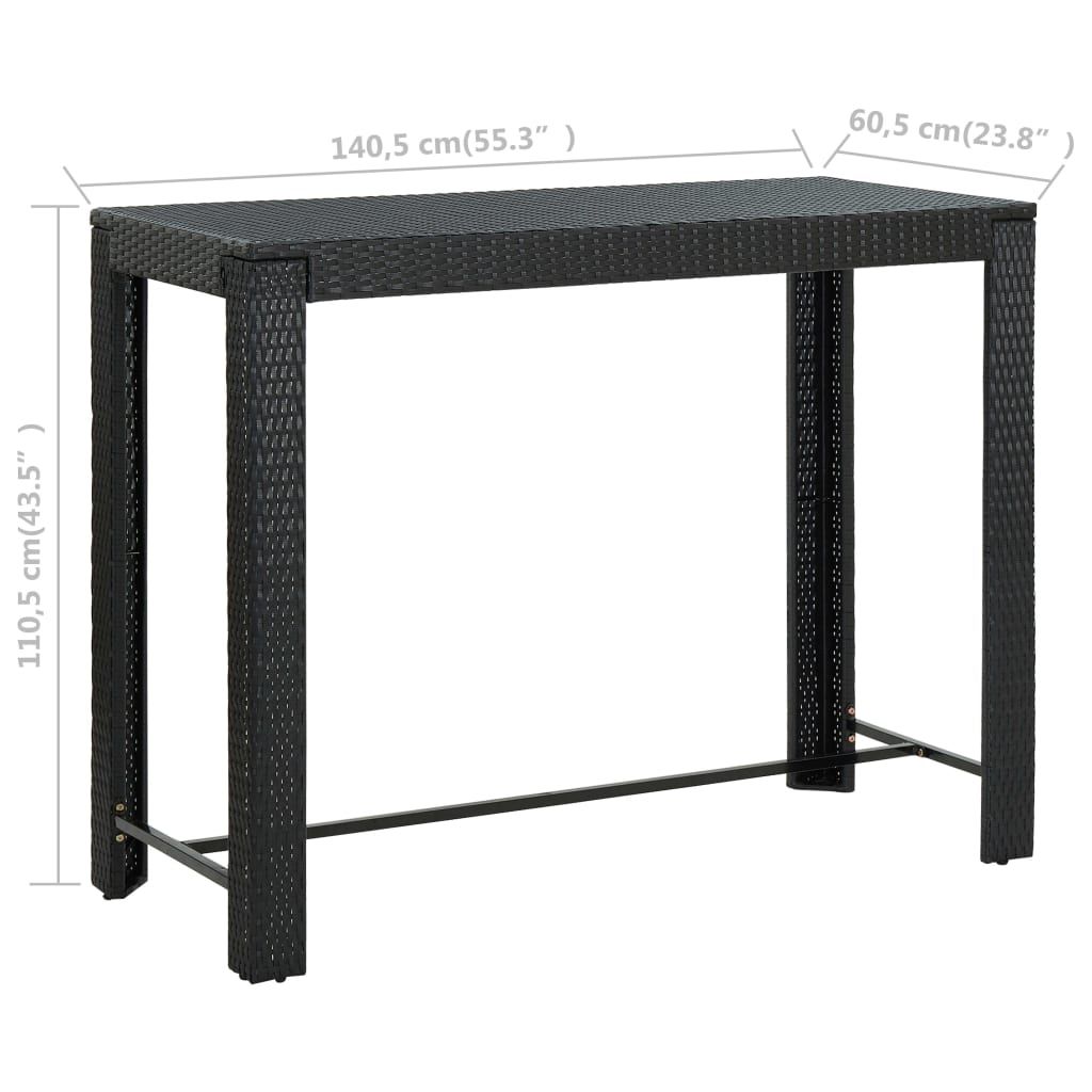 Ogrodowy stolik barowy, czarny, 140,5×60,5×110,5 cm, rattan PE