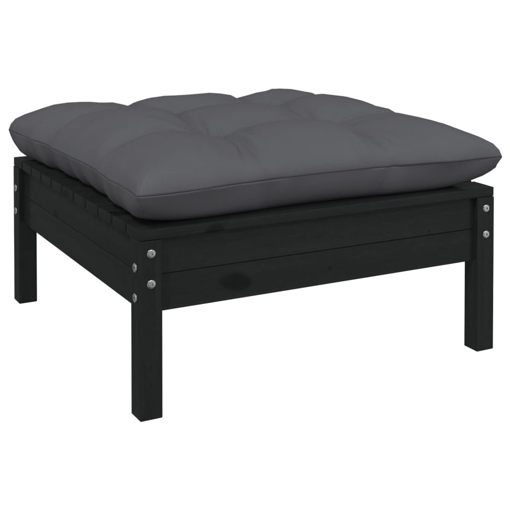 Podnóżek ogrodowy z antracytową poduszką, czarne drewno sosnowe