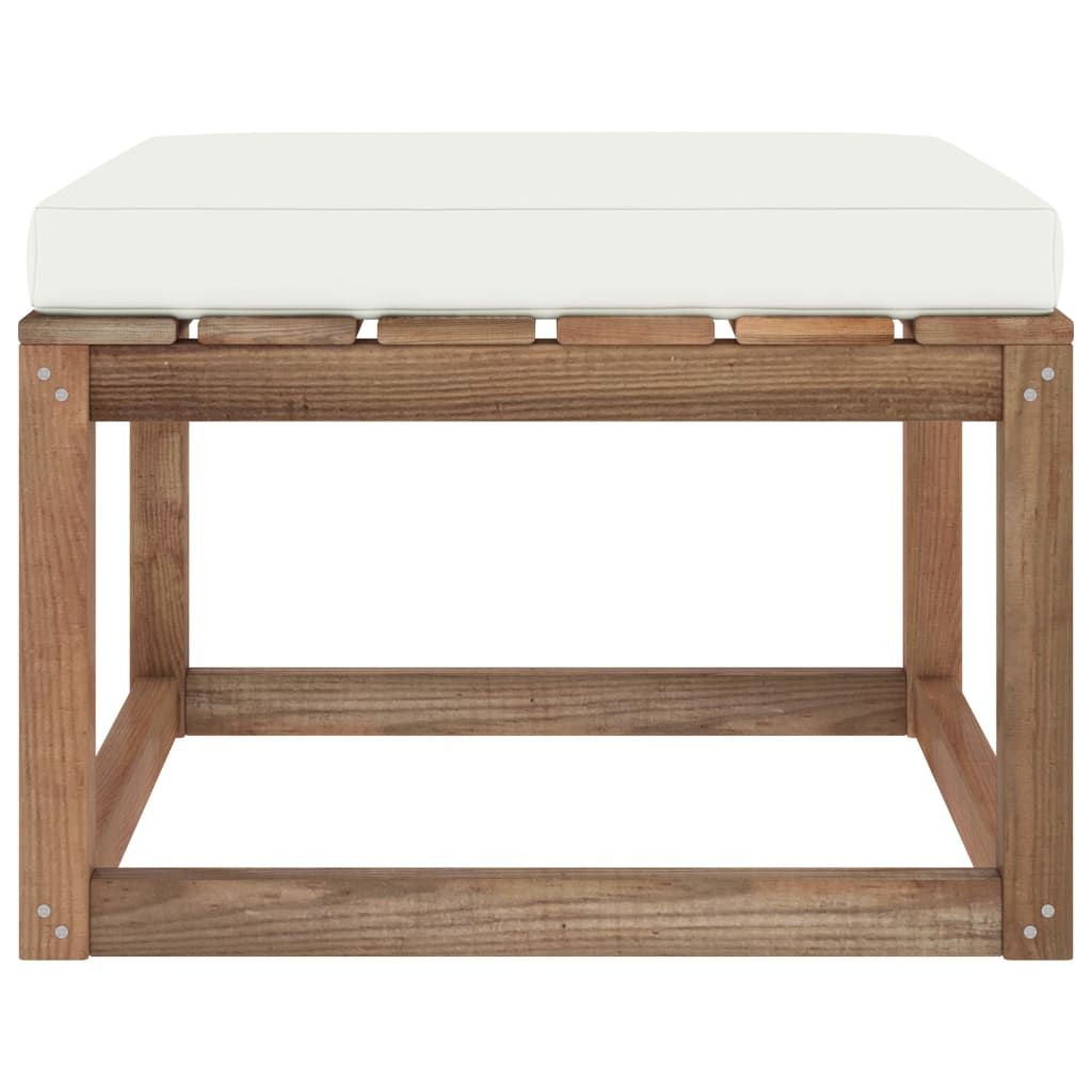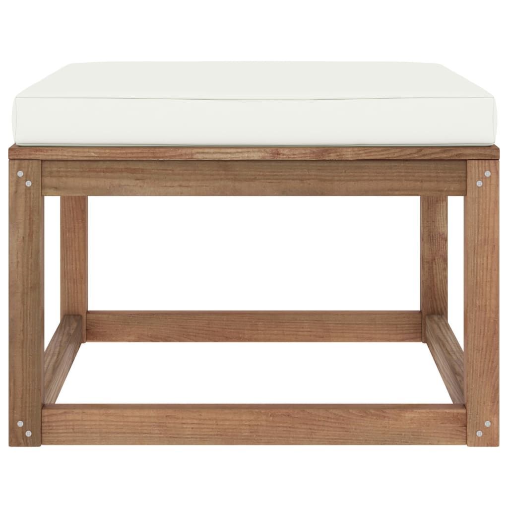Opis produktu: Drewniany podnóżek ogrodowy zwiększy atrakcyjność Twojego miejsca do siedzenia na świeżym powietrzu. Podnóżek ogrodowy wykonano z impregnowanego drewna sosnowego, dzięki czemu jest trwały, odporny na czynniki pogodowy i przyjazny dla środowiska. Ma on solidną konstrukcję i jest łatwy w utrzymaniu. Ponadto możesz zestawiać go z innymi segmentami, jak sofa środkowa czy sofa narożna, aby stworzyć własną aranżację ogrodowego zestawu wypoczynkowego. Poduszka stanowi znakomity wybór do relaksu i cieszenia się czasem wolnym w najwyższym komforcie. Stołek będzie idealny na rodzinne wieczory filmowe lub granie w gry wideo oraz może także posłużyć do korzystania z przyjemnej pogody na werandzie. Uwaga: aby przedłużyć żywotność mebli ogrodowych, zalecamy zabezpieczenie ich wodoodpornym pokrowcem.