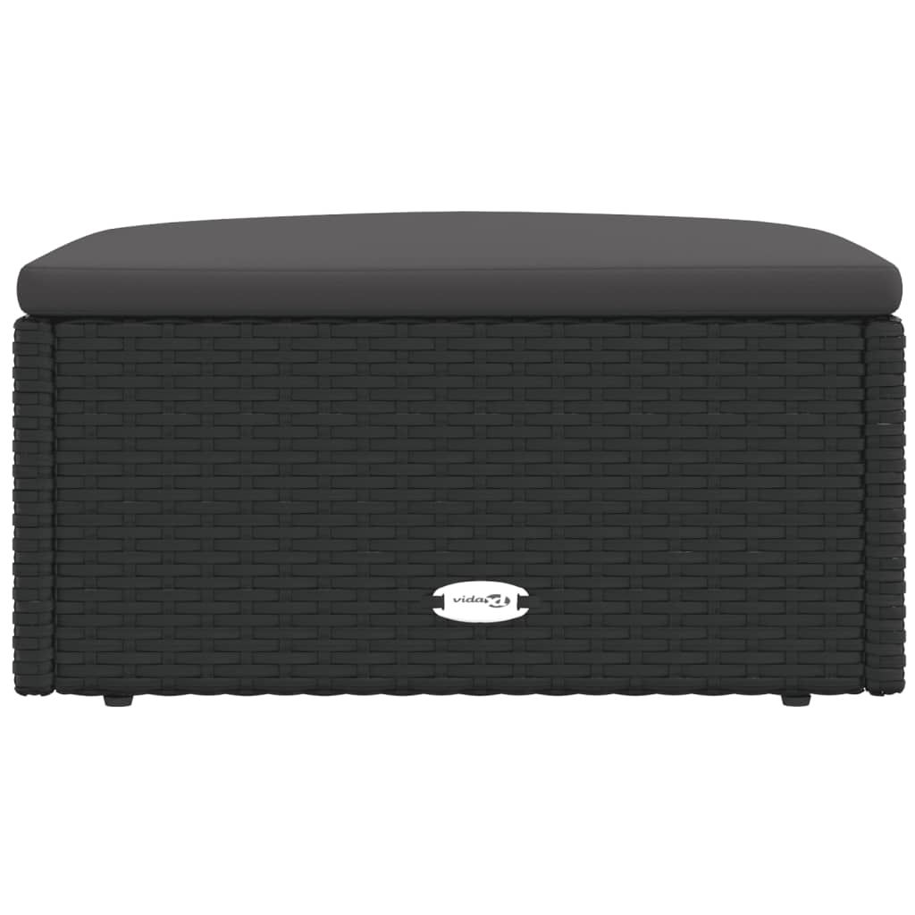 Podnóżek ogrodowy z poduszką, czarny, polirattan