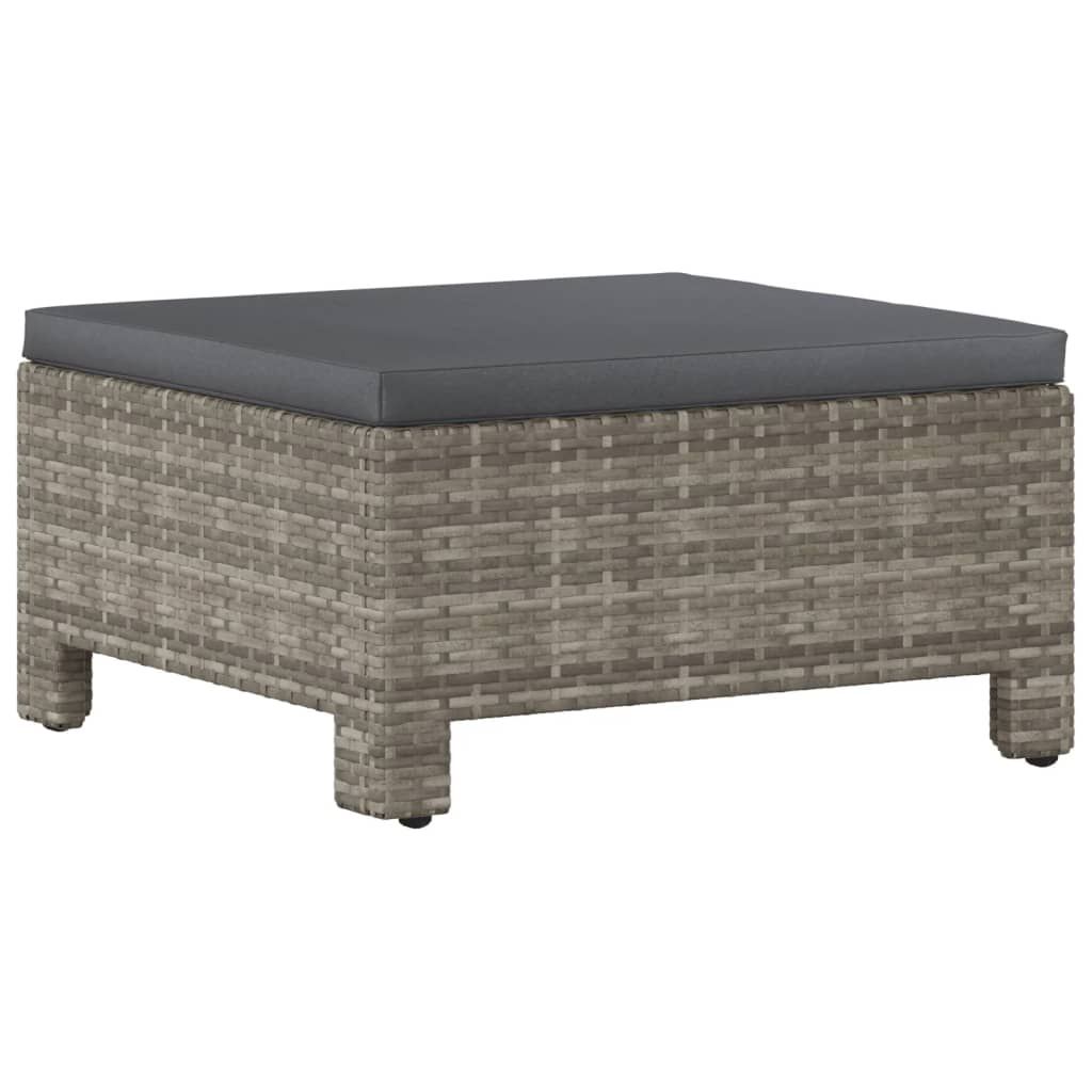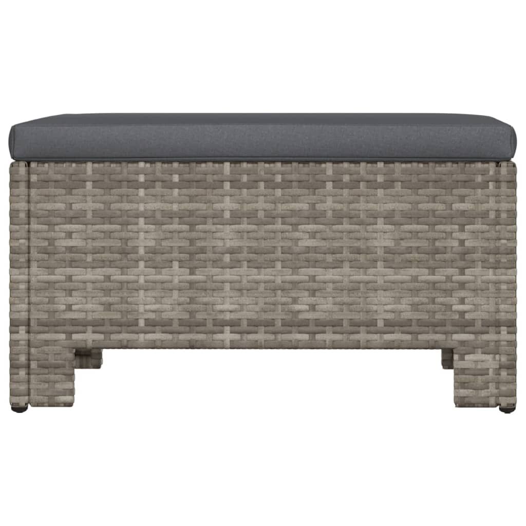 Podnóżek ogrodowy z poduszką, szary, polirattan