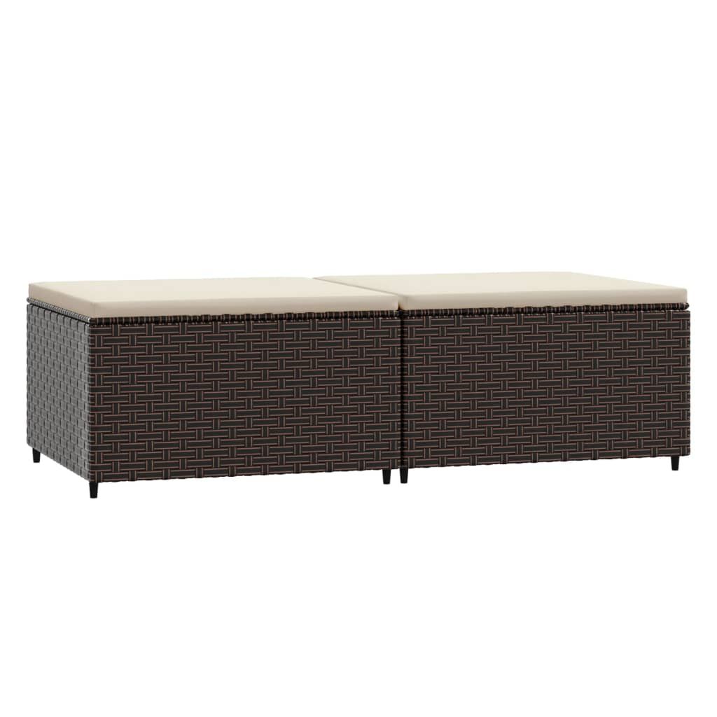 Podnóżki ogrodowe z poduszkami, 2 szt., brązowe, polirattan