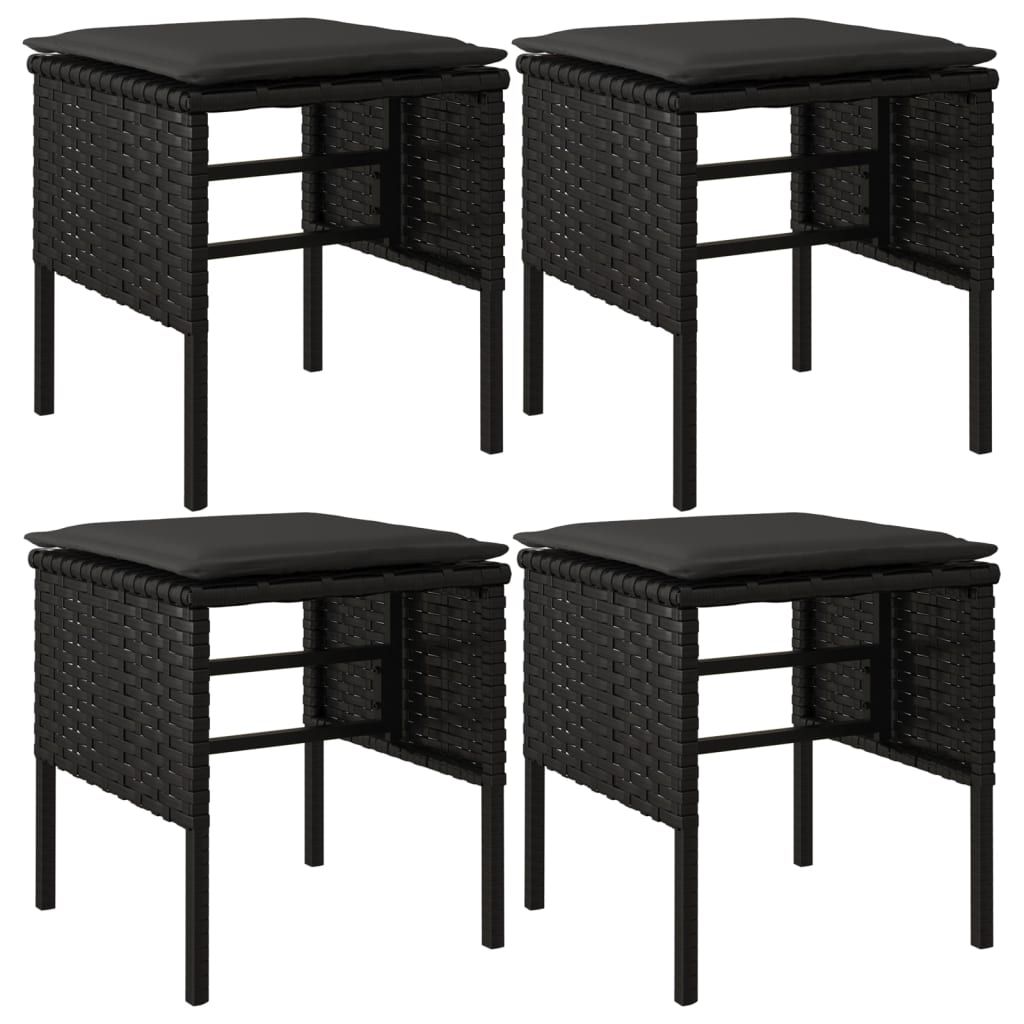 Podnóżki ogrodowe z poduszkami, 4 szt., czarne, polirattan