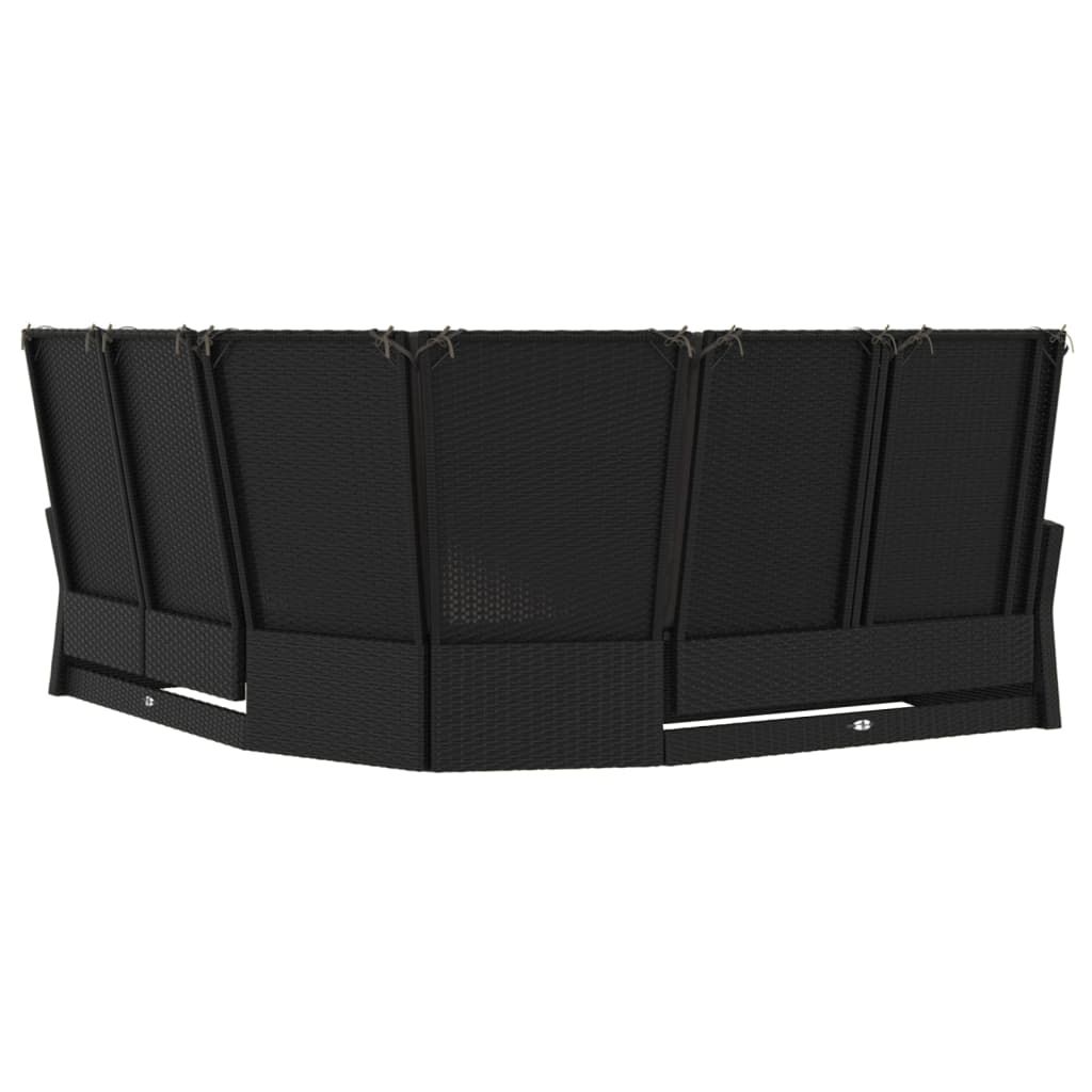 Rozkładana sofa narożna z poduszkami, czarna, polirattan
