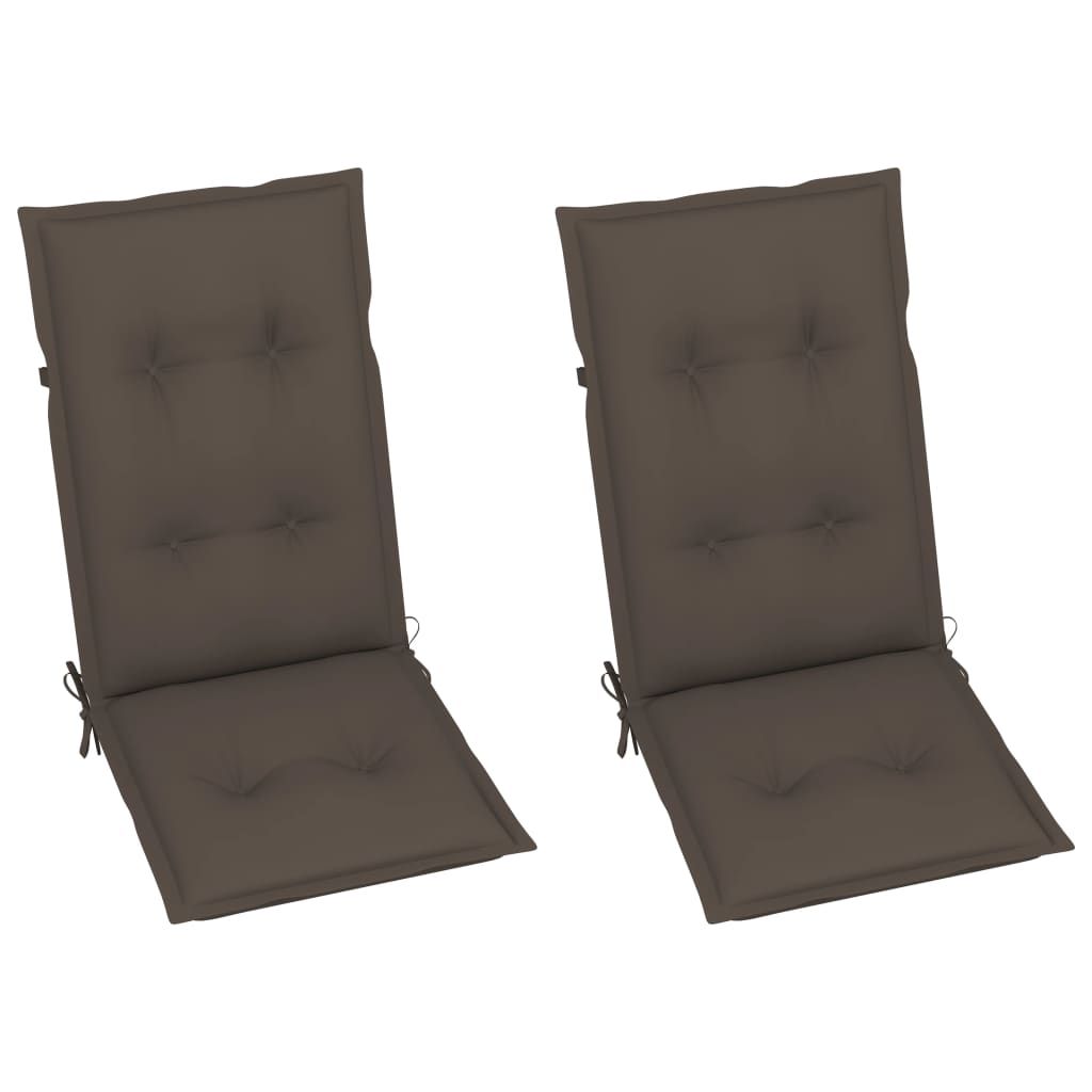 Opis produktu: Drewniany zestaw rozkładanych krzeseł ogrodowych z poduszkami został zaprojektowany tak, by podnieść Twój poziom komfortu podczas wypoczynku na świeżym powietrzu. Idealnie sprawdzi się podczas rozmowy z rodziną i przyjaciółmi lub w czasie opalania się. Te krzesła ogrodowe wykonano z litego drewna akacjowego, wykończonego olejem, które jest twardym drewnem o zwartym usłojeniu. Charakteryzuje się ono wytrzymałością na obciążenia oraz na upływ czasu. Za sprawą olejowanej powierzchni meble można łatwo wyczyścić przy pomocy wilgotnej ściereczki. Ponadto ich oparcia są regulowane w 5 pozycjach, dzięki czemu zawsze znajdziesz najwygodniejsze ustawienie dla siebie. Oprócz tego dołączone poduszki zapewniają najwyższy komfort podczas wypoczynku lub posiłku. Każda z nich zawiera gumkę i dwa zestawy sznurków, aby przymocować je dobrze do krzeseł.