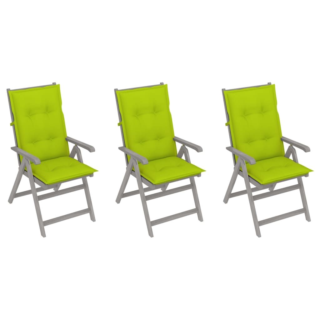 Rozkładane krzesła ogrodowe z poduszkami, 3 szt., lita akacja