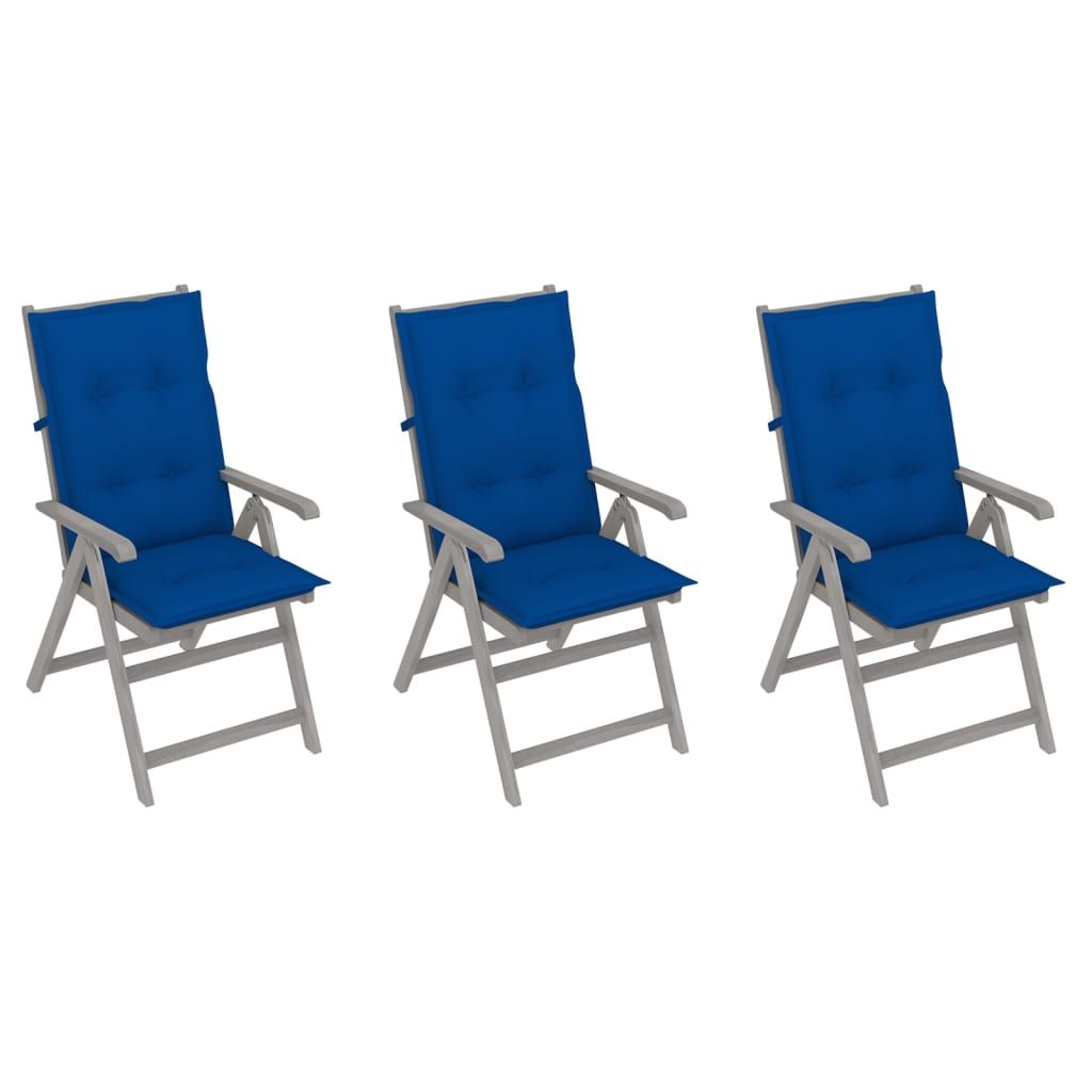 Rozkładane krzesła ogrodowe z poduszkami, 3 szt., lita akacja