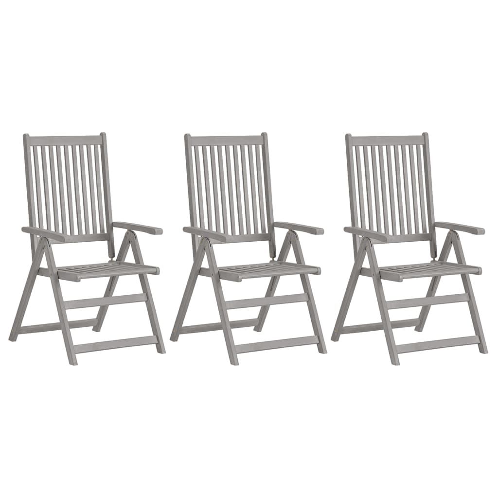 Rozkładane krzesła ogrodowe z poduszkami, 3 szt., lita akacja