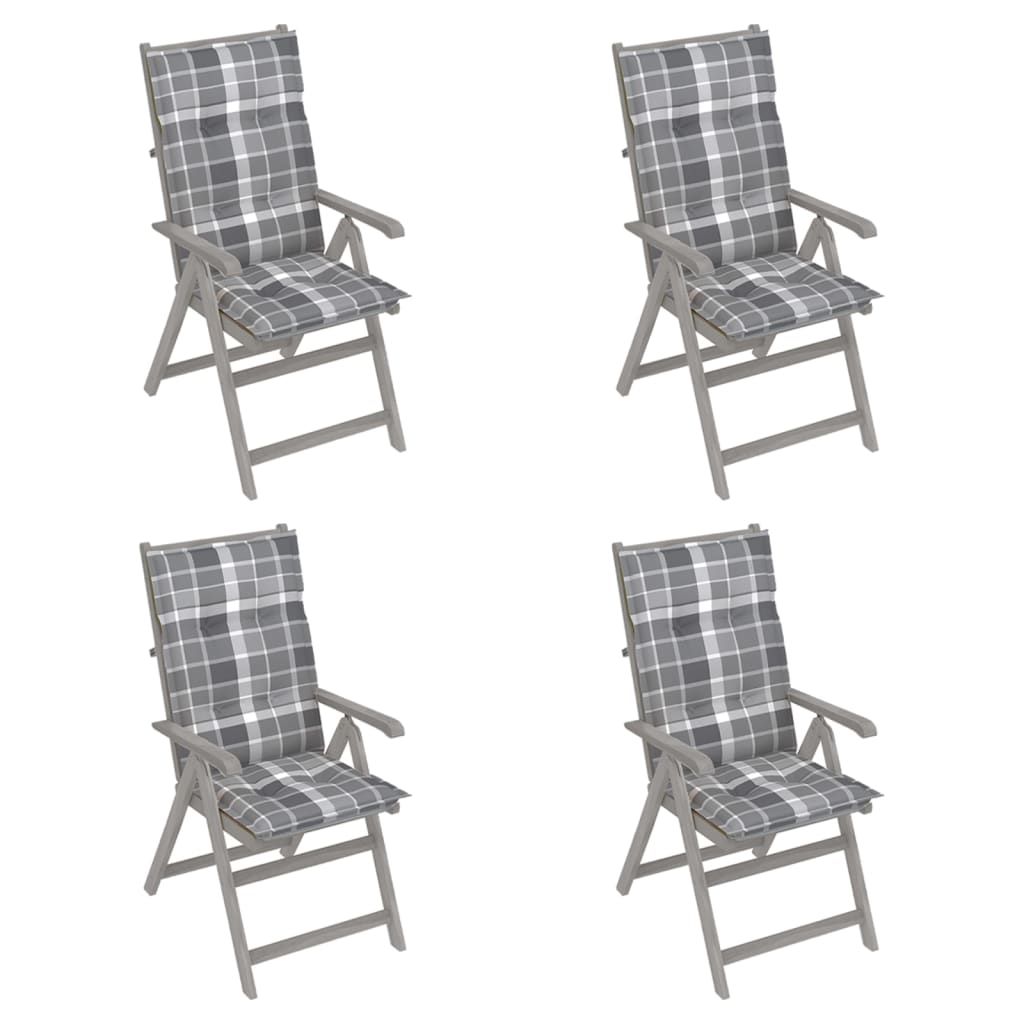 Rozkładane krzesła ogrodowe z poduszkami, 4 szt., lita akacja