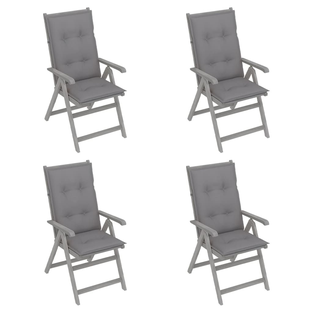 Rozkładane krzesła ogrodowe z poduszkami, 4 szt., lita akacja