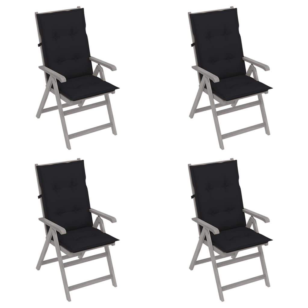 Rozkładane krzesła ogrodowe z poduszkami, 4 szt., lita akacja