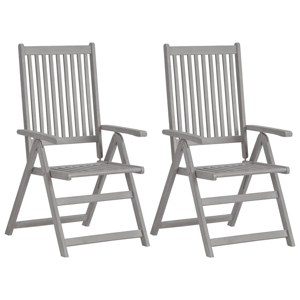 Opis produktu: Ten modny zestaw krzeseł ogrodowych z poduszkami zwiększy komfort Twojej przestrzeni na świeżym powietrzu! Meble wykonano z litego drewna akacjowego i wykończono szarym kolorem. Drewno akacjowe to twardy materiał o zwartym usłojeniu. Te pięknie zaprojektowane krzesła ogrodowe są stabilne, trwałe i efektowne. Oparcie można ustawiać w 5 pozycjach, dzięki czemu zawsze znajdziesz najwygodniejszą, zgodnie z własnymi preferencjami. Co więcej dołączone poduszki oferują większy komfort podczas wylegiwania się lub jedzenia. Każda poduszka ma gumkę i dwa zestawy sznurków do mocowania jej na krześle. Meble te sprawdzą się idealnie do spożywania posiłków z rodziną lub korzystania z pogody w ogrodzie.