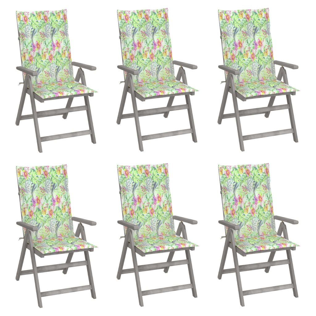 Rozkładane krzesła ogrodowe z poduszkami, 6 szt., lita akacja