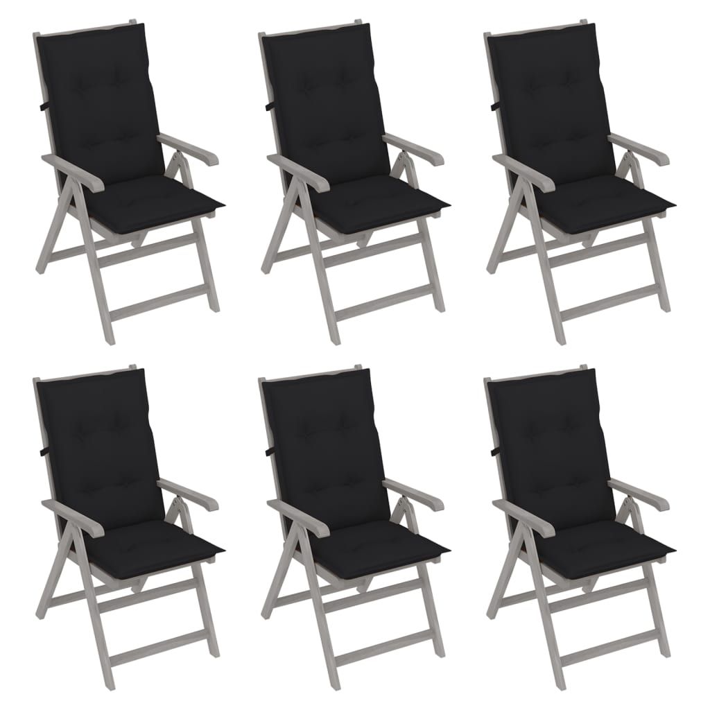 Rozkładane krzesła ogrodowe z poduszkami, 6 szt., lita akacja