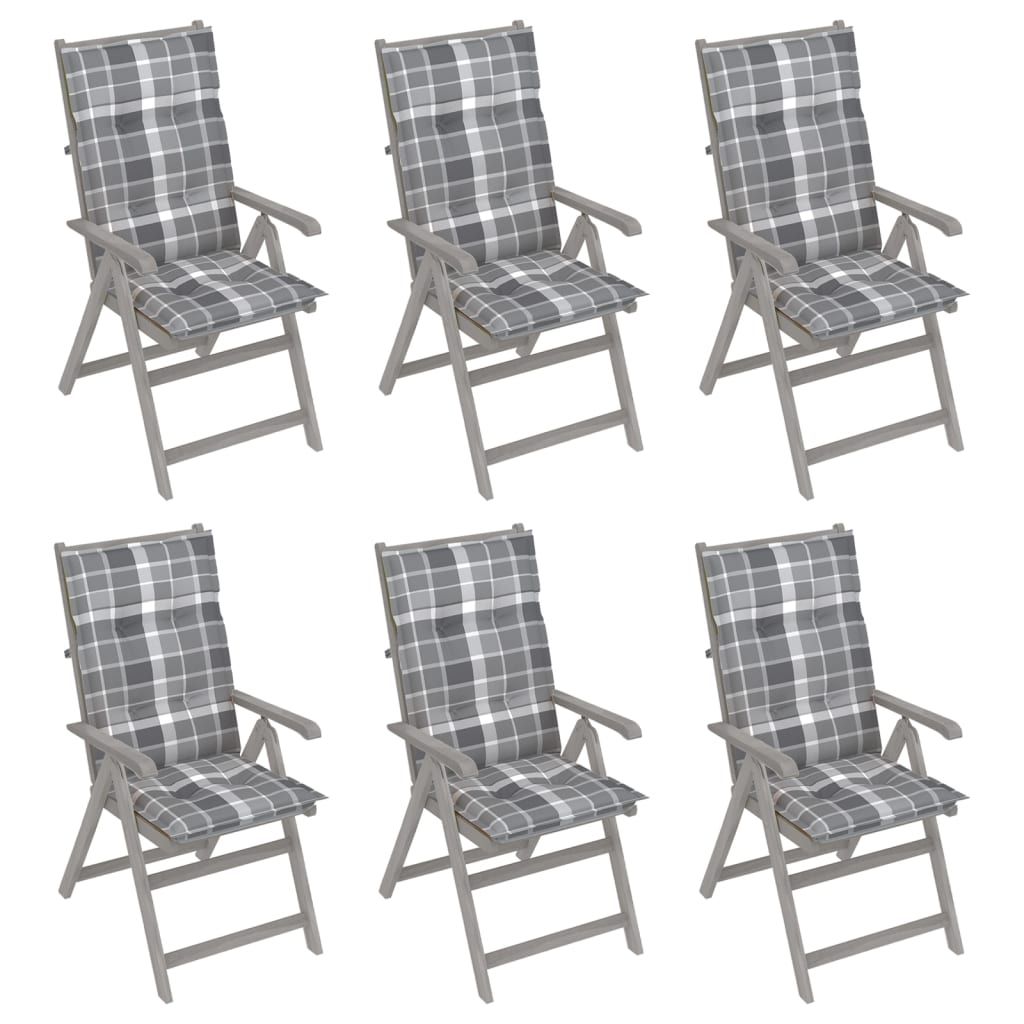 Rozkładane krzesła ogrodowe z poduszkami, 6 szt., lita akacja