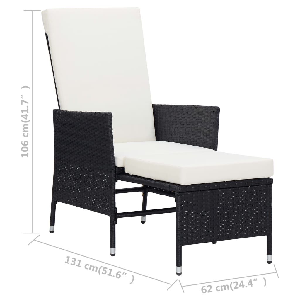 Rozkładane krzesło ogrodowe z poduszkami, czarny polirattan