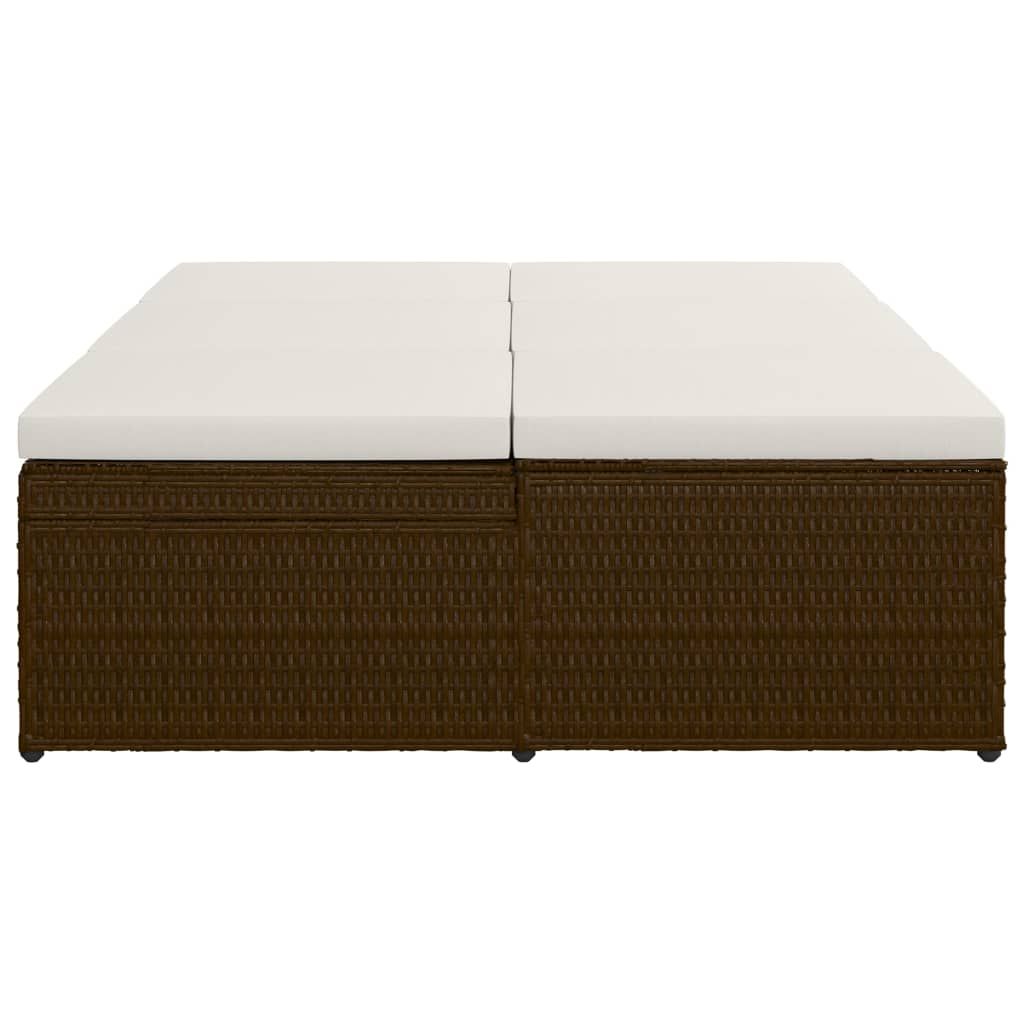 Rozkładane łóżko ogrodowe z poduszką, polirattan, brązowe