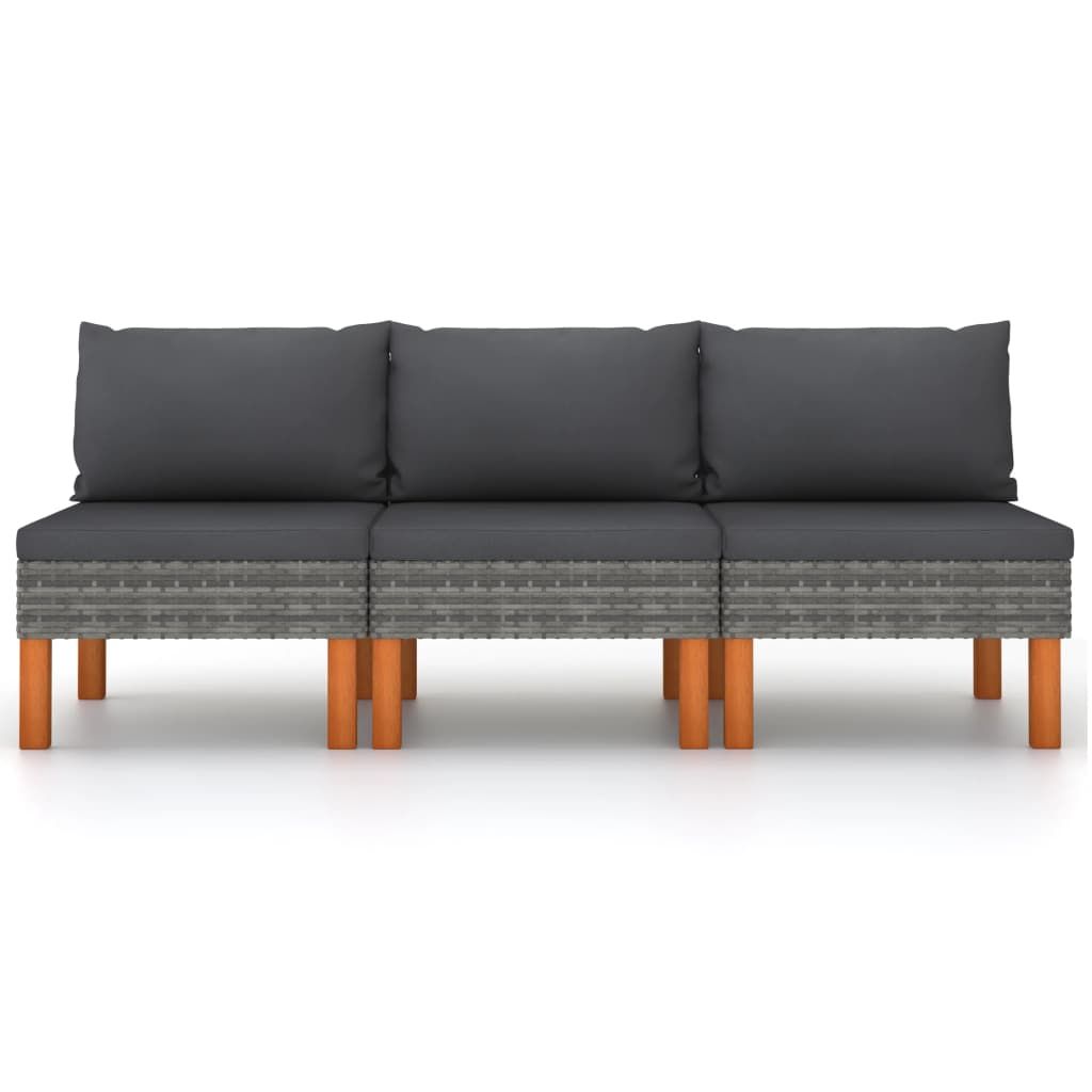 Siedziska środkowe, 3 szt., polirattan i drewno eukaliptusowe