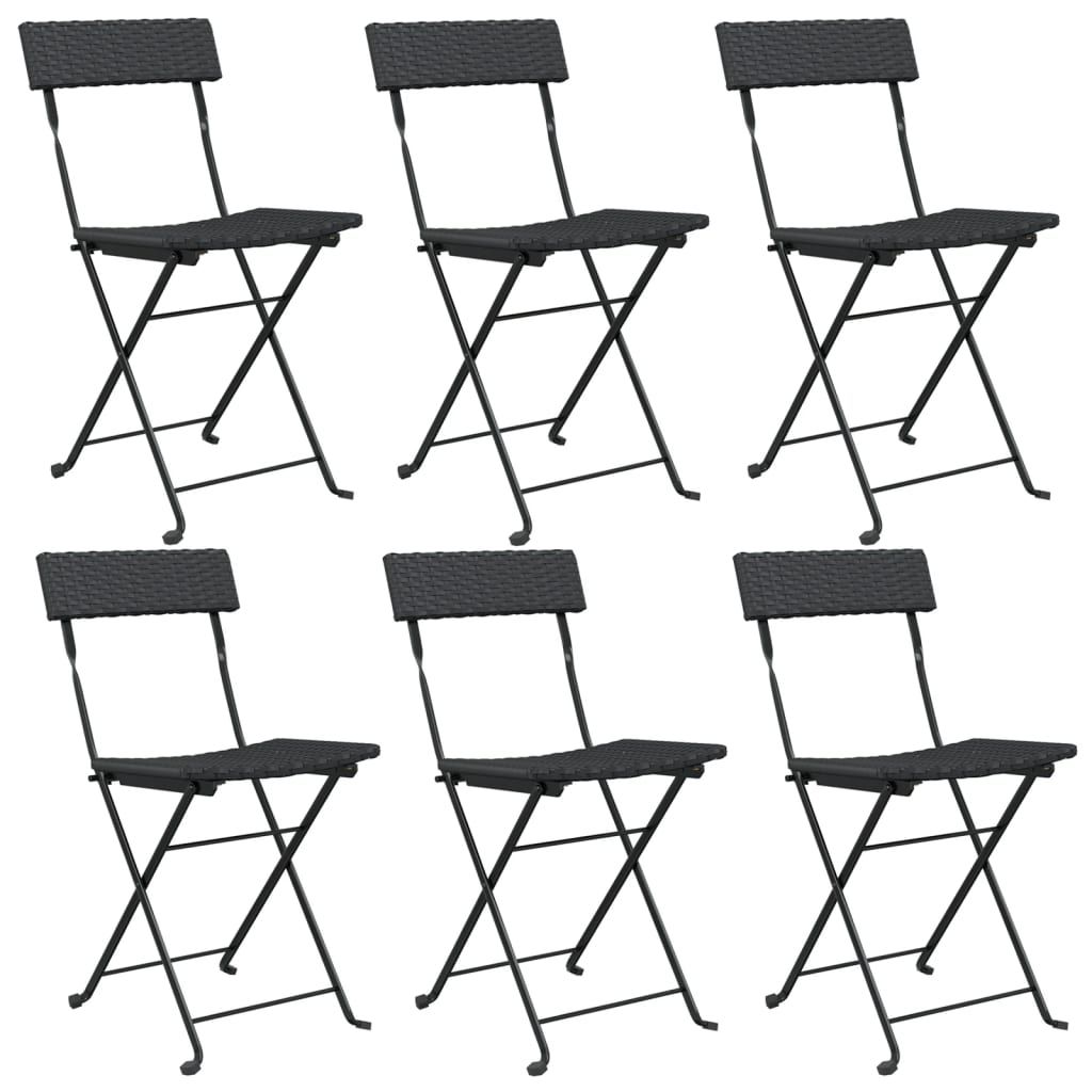 Składane krzesła bistro, 6 szt., czarne, polirattan i stal