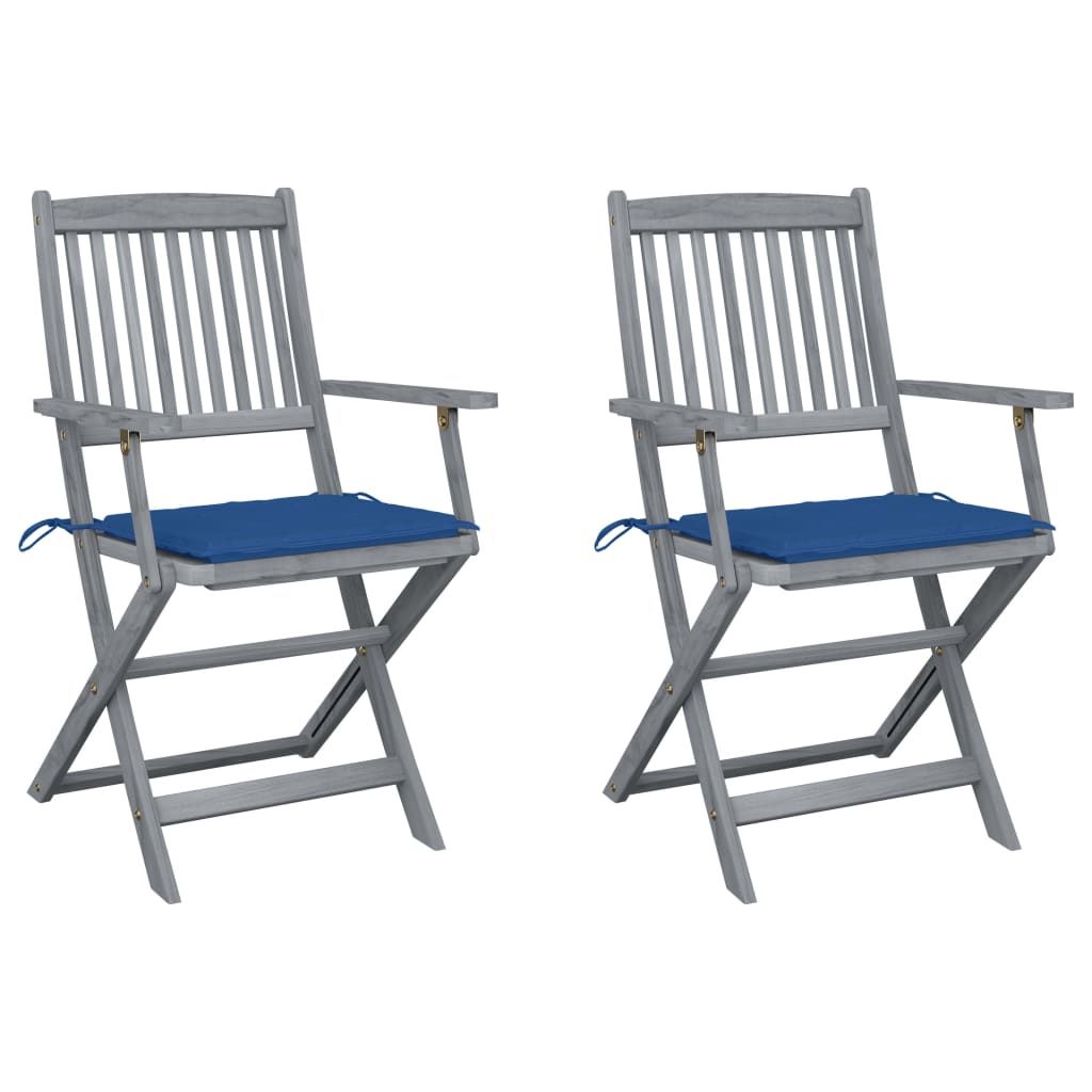 Składane krzesła ogrodowe, 2 szt., poduszki, drewno akacjowe