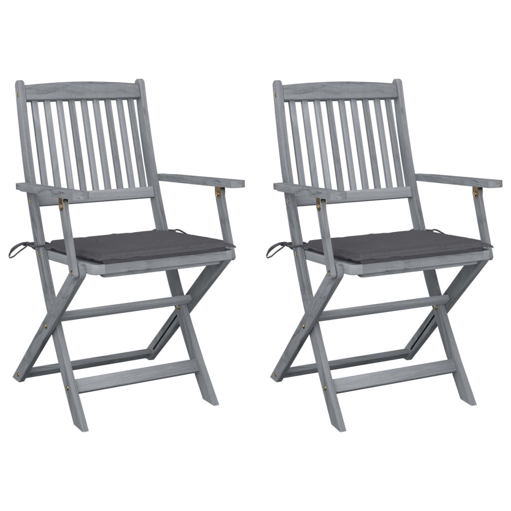 Składane krzesła ogrodowe, 2 szt., poduszki, drewno akacjowe