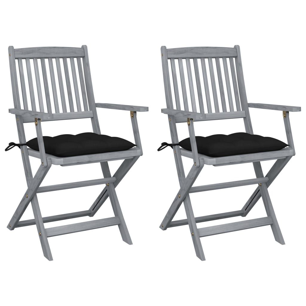 Składane krzesła ogrodowe, 2 szt., z poduszkami, akacjowe