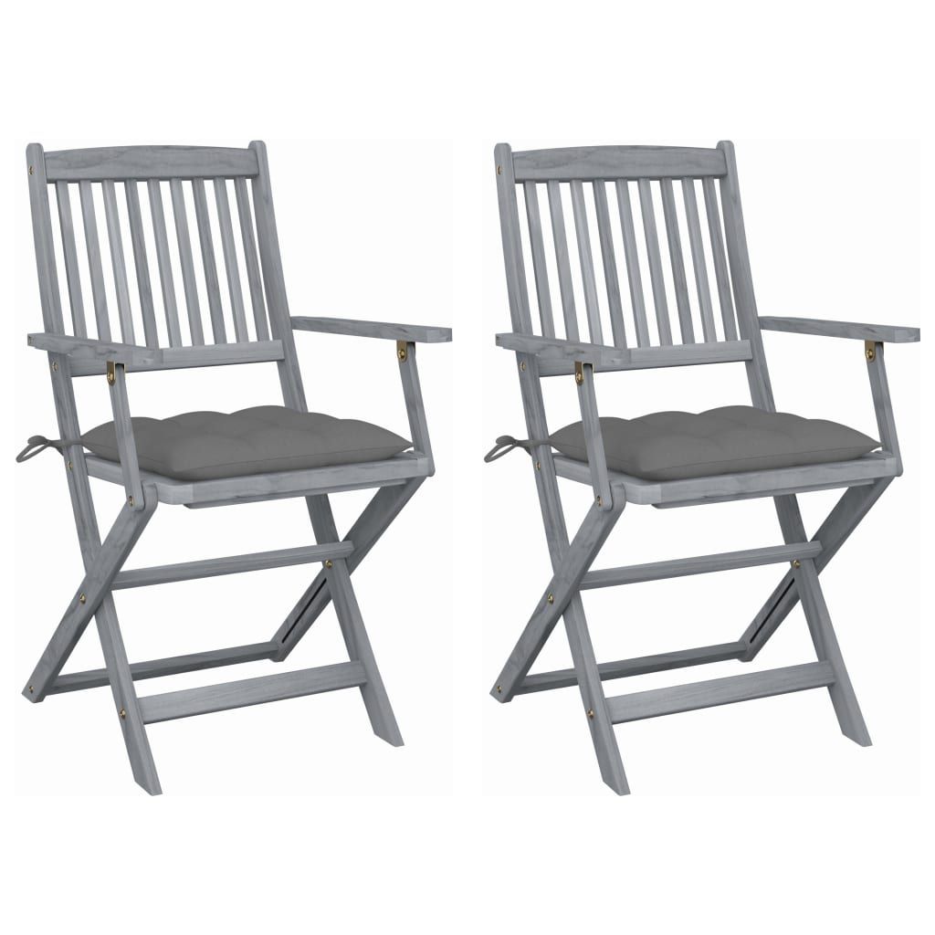 Składane krzesła ogrodowe, 2 szt., z poduszkami, akacjowe