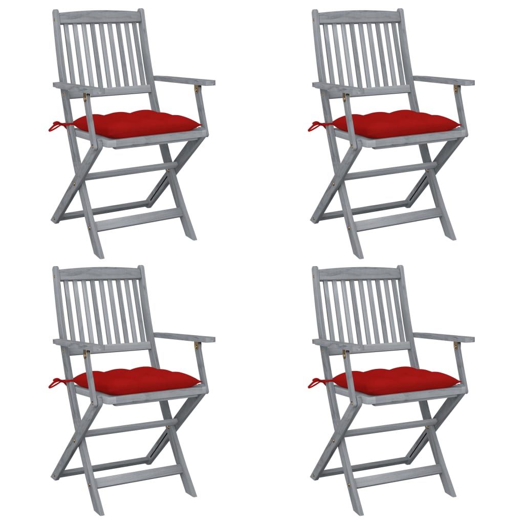 Składane krzesła ogrodowe, 4 szt., poduszki, drewno akacjowe