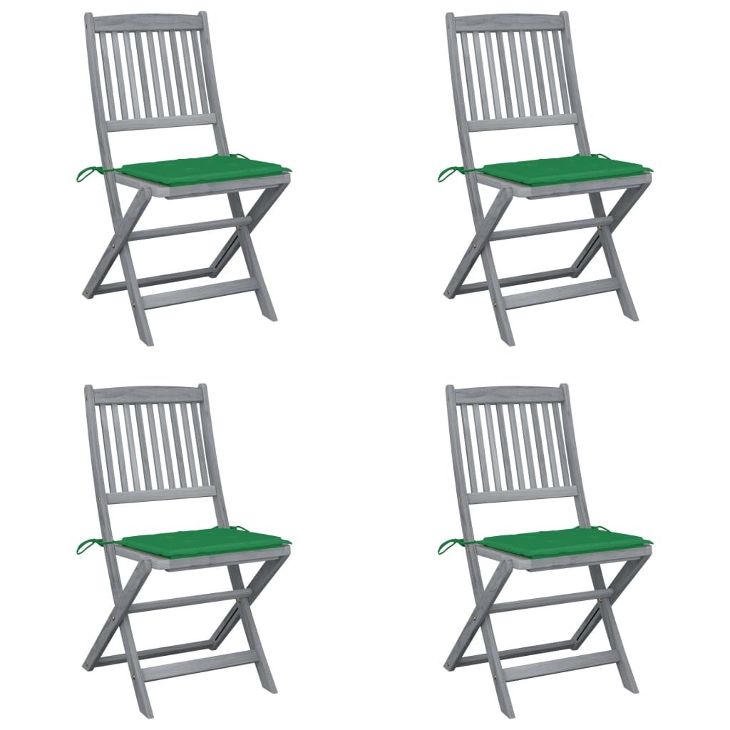 Składane krzesła ogrodowe, 4 szt., poduszki, drewno akacjowe