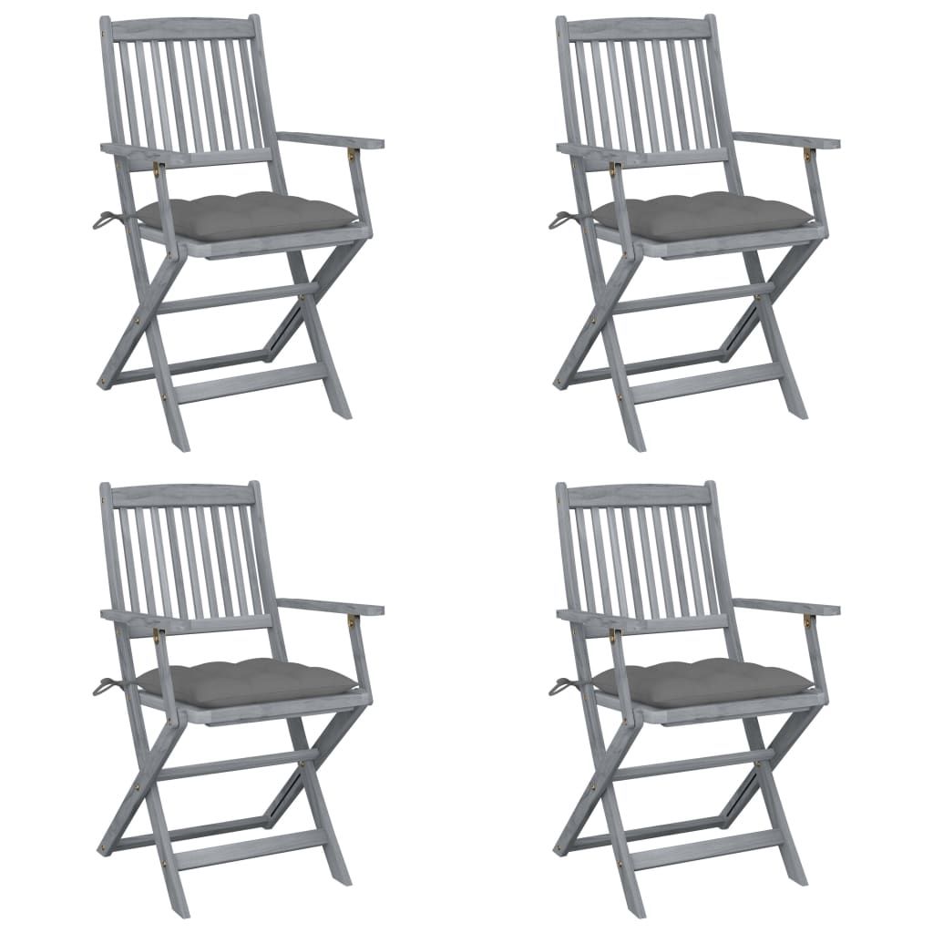 Składane krzesła ogrodowe, 4 szt., poduszki, drewno akacjowe